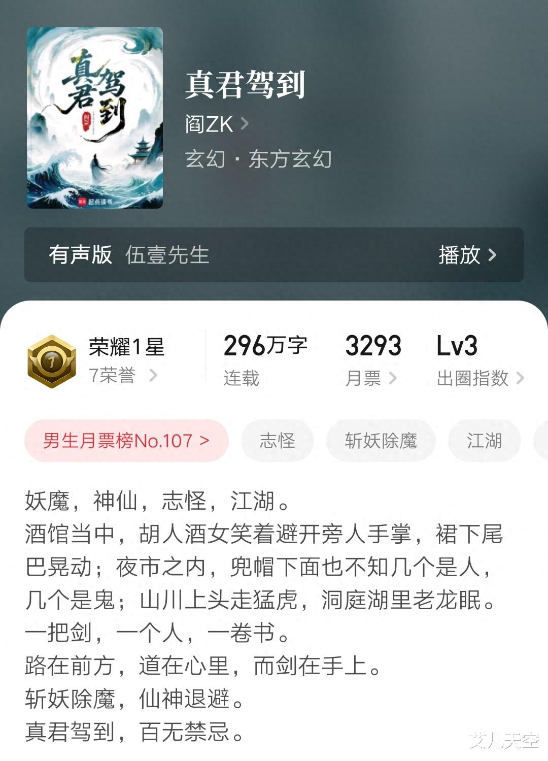 阎ZK的这本《真君驾到》今天下午完结了。小说去年六月初开始连载,写了十个多月,近三百万字结束,一如既往地快。只是相较于前面几本小说,这本的成绩低了不少,上架首订破万,完结也只是万订出头。