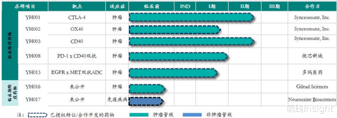 打开其合作名单,几乎是一条打通顶级跨国药企的生态链:公司已与德国默克、吉利德科学(就管线YH016达成独家选择权及授权)、强生、Neurocrine Biosciences(就管线YH017达成独家选择权及授权)等海外巨头达成了深度合作。