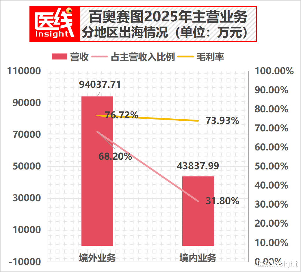 百奥赛图交出了一份含金量不错的出海成绩单:2025年度,公司境外主营业务收入达到9.40亿元,同比大增42.00%,海外业务占主营收入的比重已逼近70%。