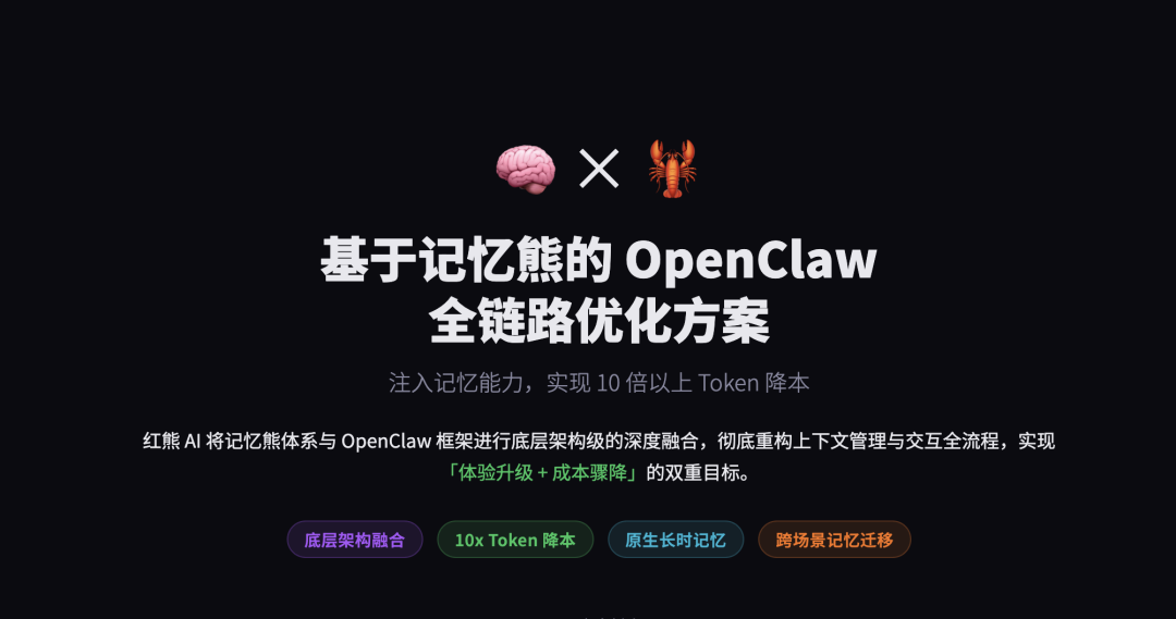 所有接入红熊AI记忆科学平台的企业,均可通过OpenClaw框架一键获得长时记忆增强与Token成本优化能力,为大模型产业落地提供了兼顾体验与成本的突破性进展。