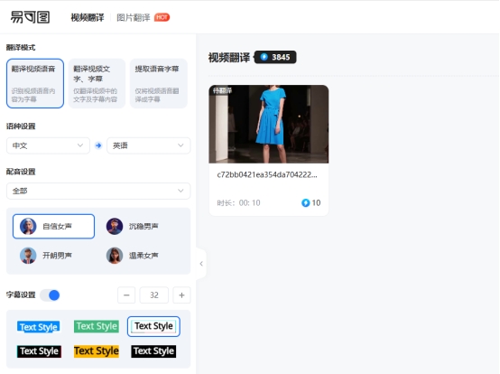 再来看看视频方面的表现吧,目前易可图也已经实现了视频的自动化翻译处理,主要分为三种不同的操作方式: