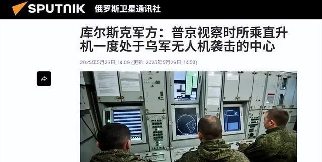 当地时间26日报道,日前,俄罗斯总统普京乘飞机前往库尔斯克视察遭遇意外——乌克兰发动了一场声势浩大的无人机袭击,46架自