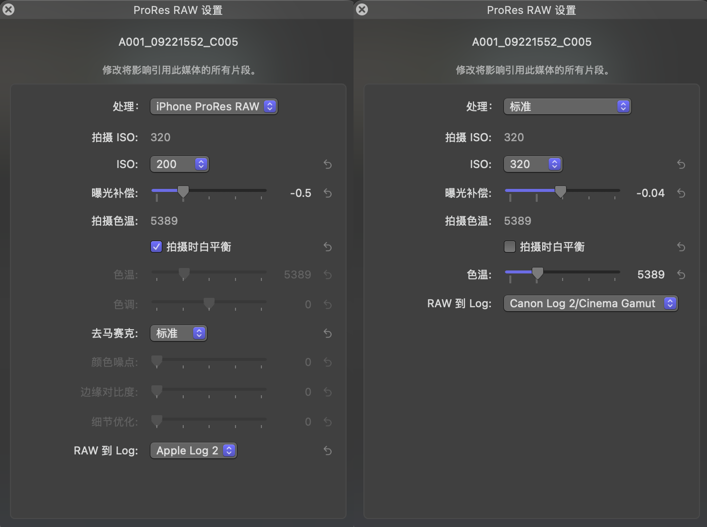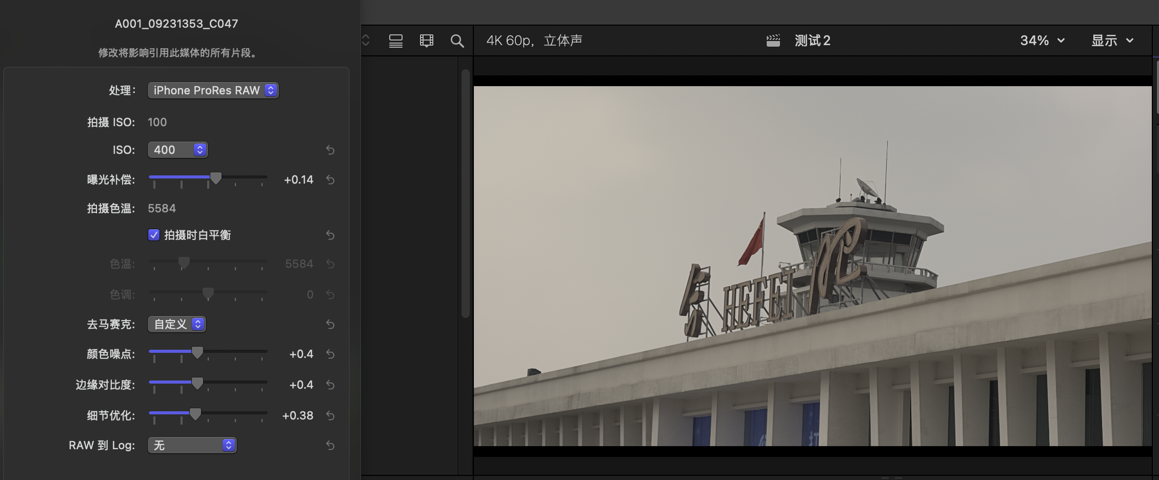 对于拍照基本都用RAW格式的我来说,视频方面我也算是有个一个可用的格式了,你还可以对ProRes RAW的视频进行一个简单的锐化降噪处理。