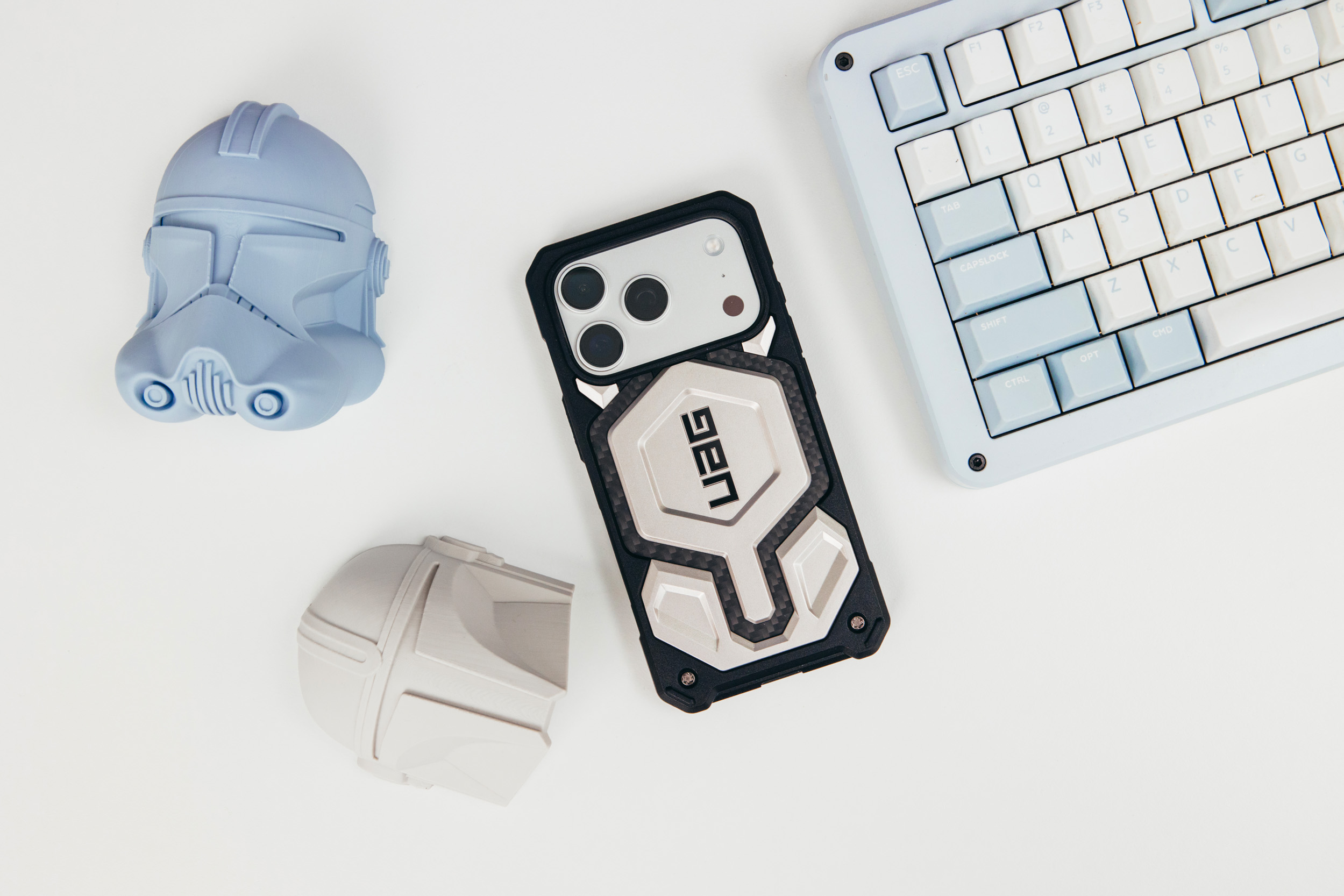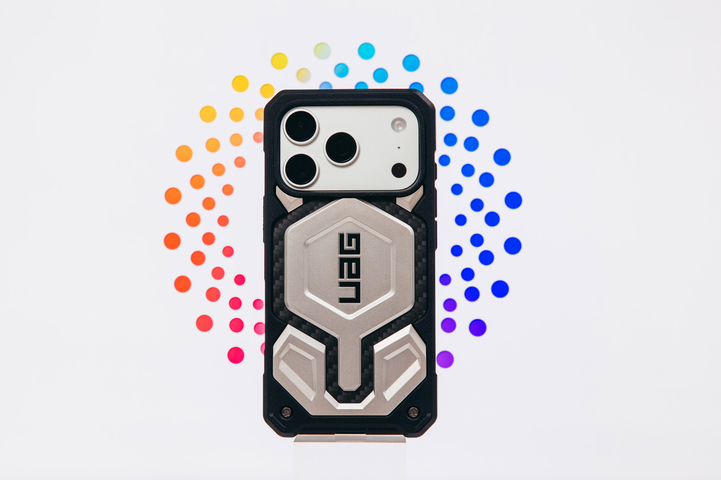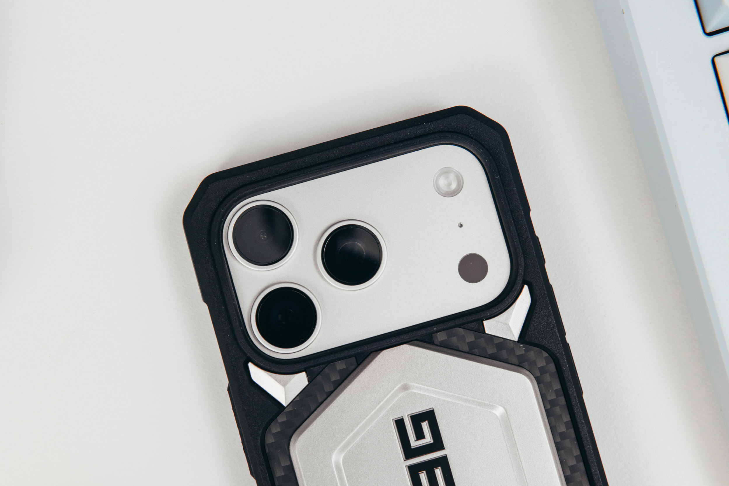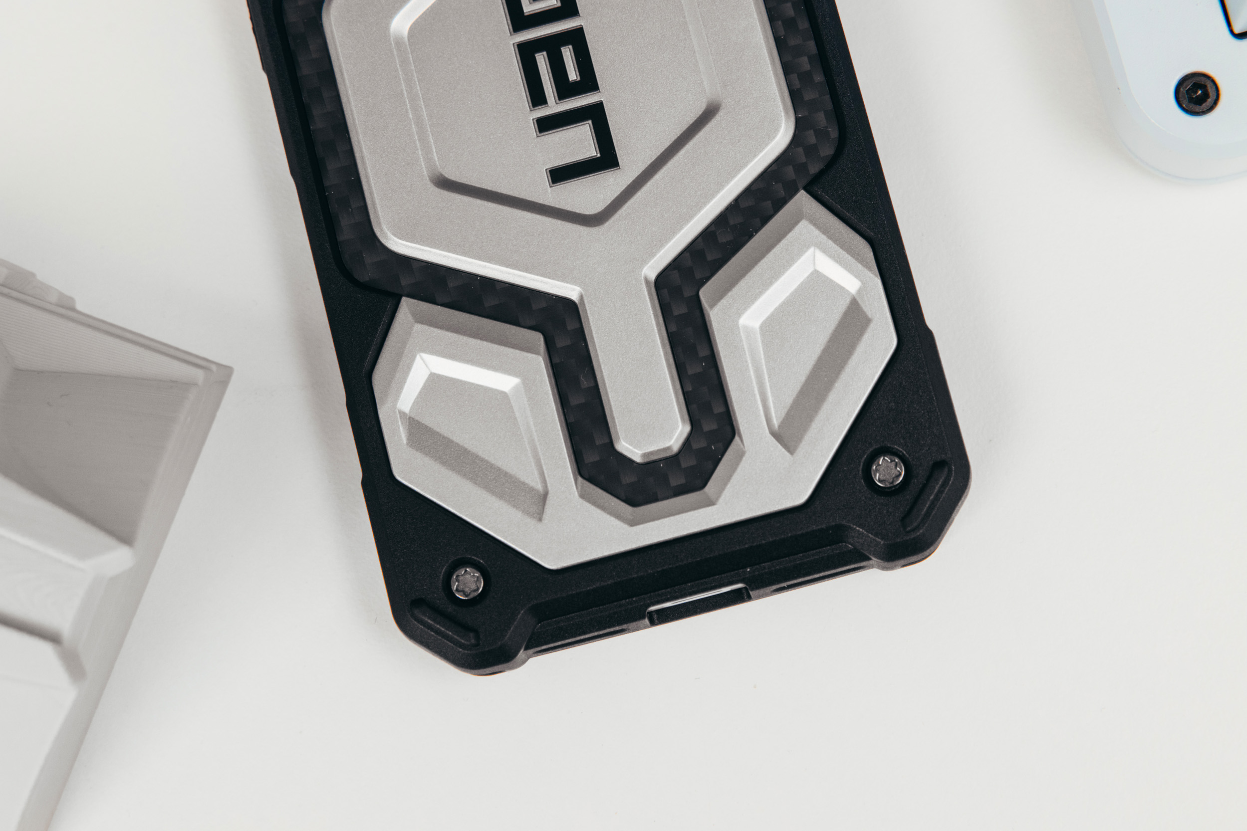 这次选择是凯芙拉碳纤维钛合金配色,也是目前的旗舰款了,支持magesafe磁吸,底部做了挂绳孔设计。