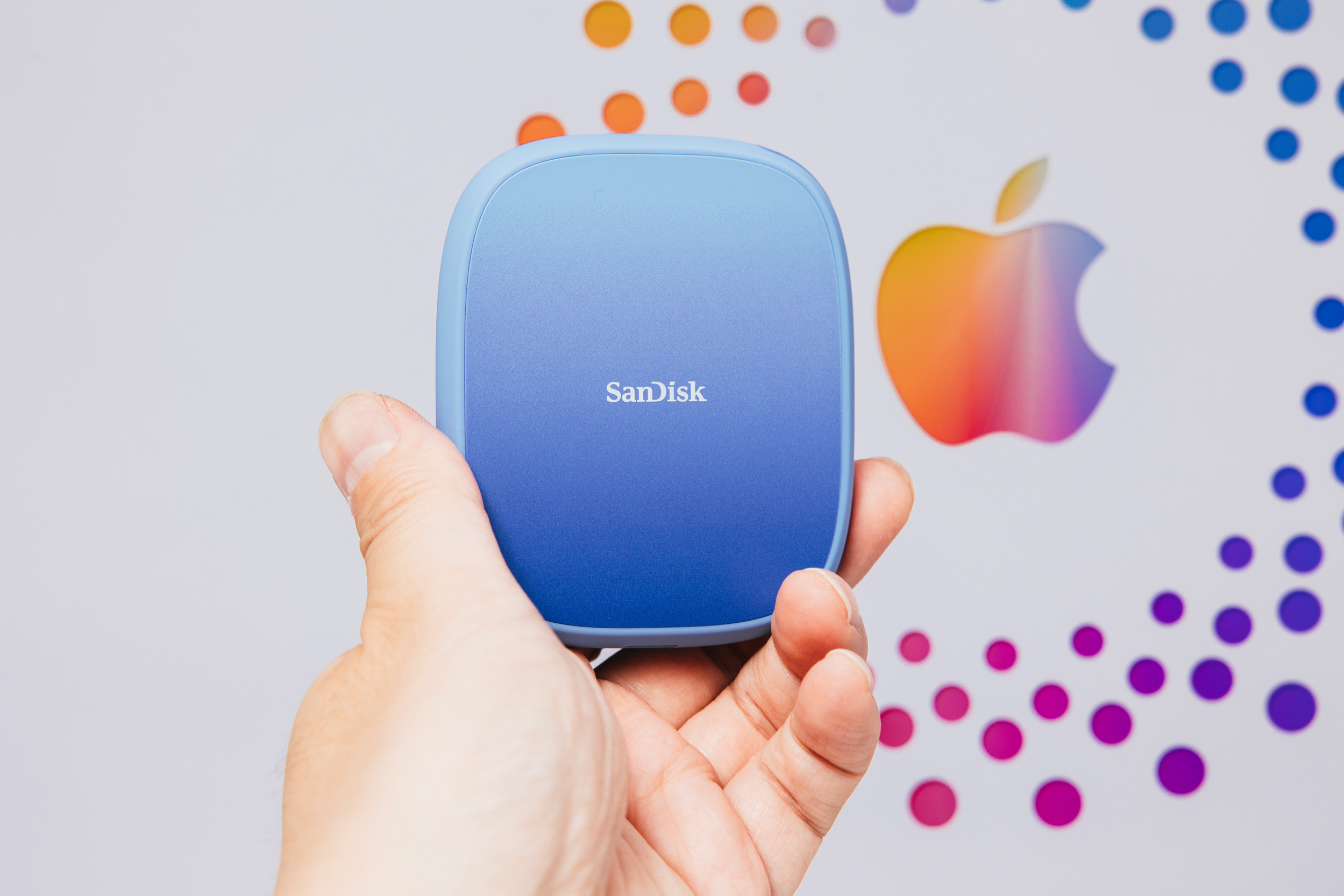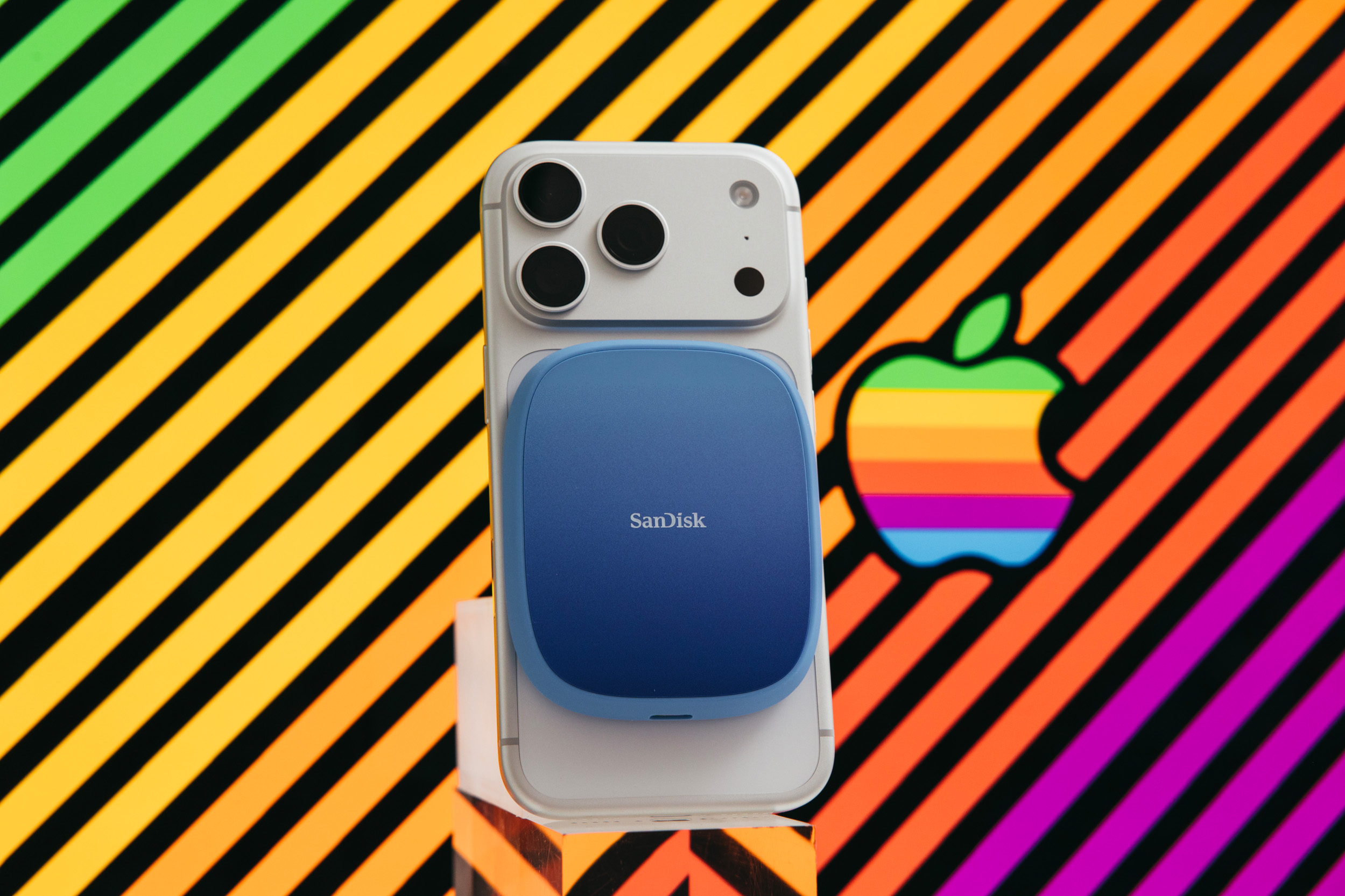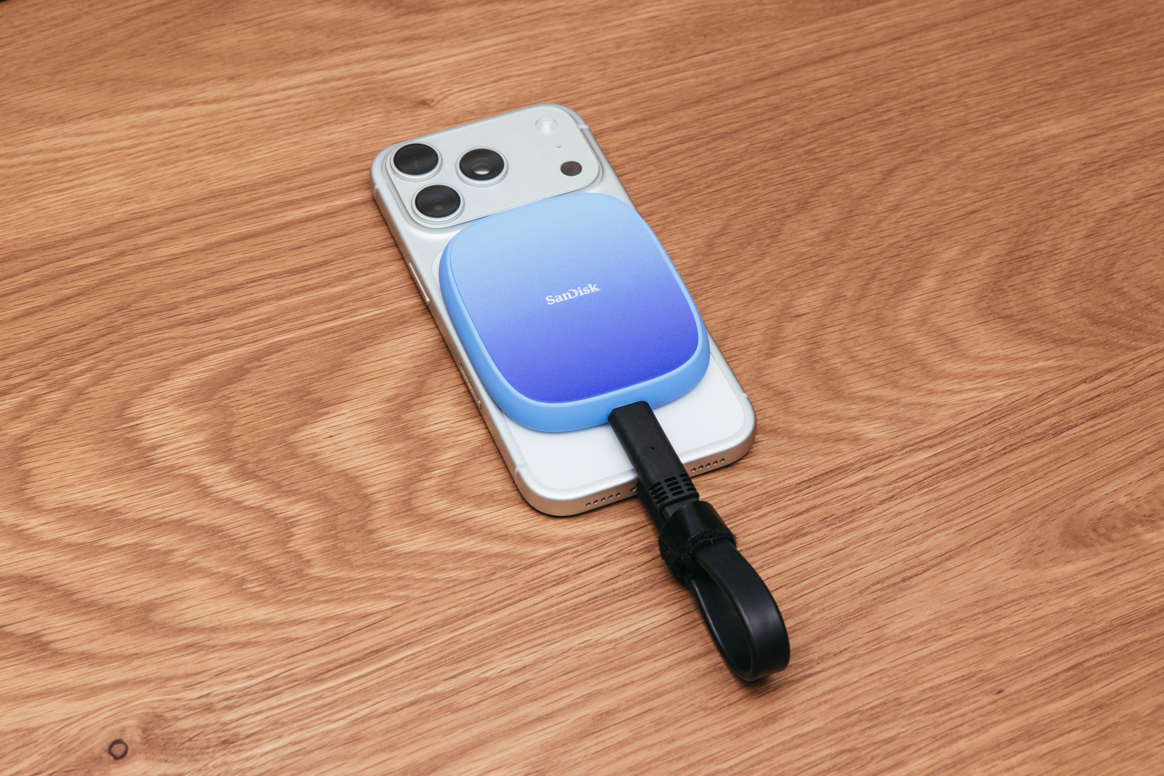 闪迪创作者手机固态硬盘就是为此而生的,配件方面就主体和软数据线以及一个磁吸圆环,也可以在不支持magesafe的手机上使用。