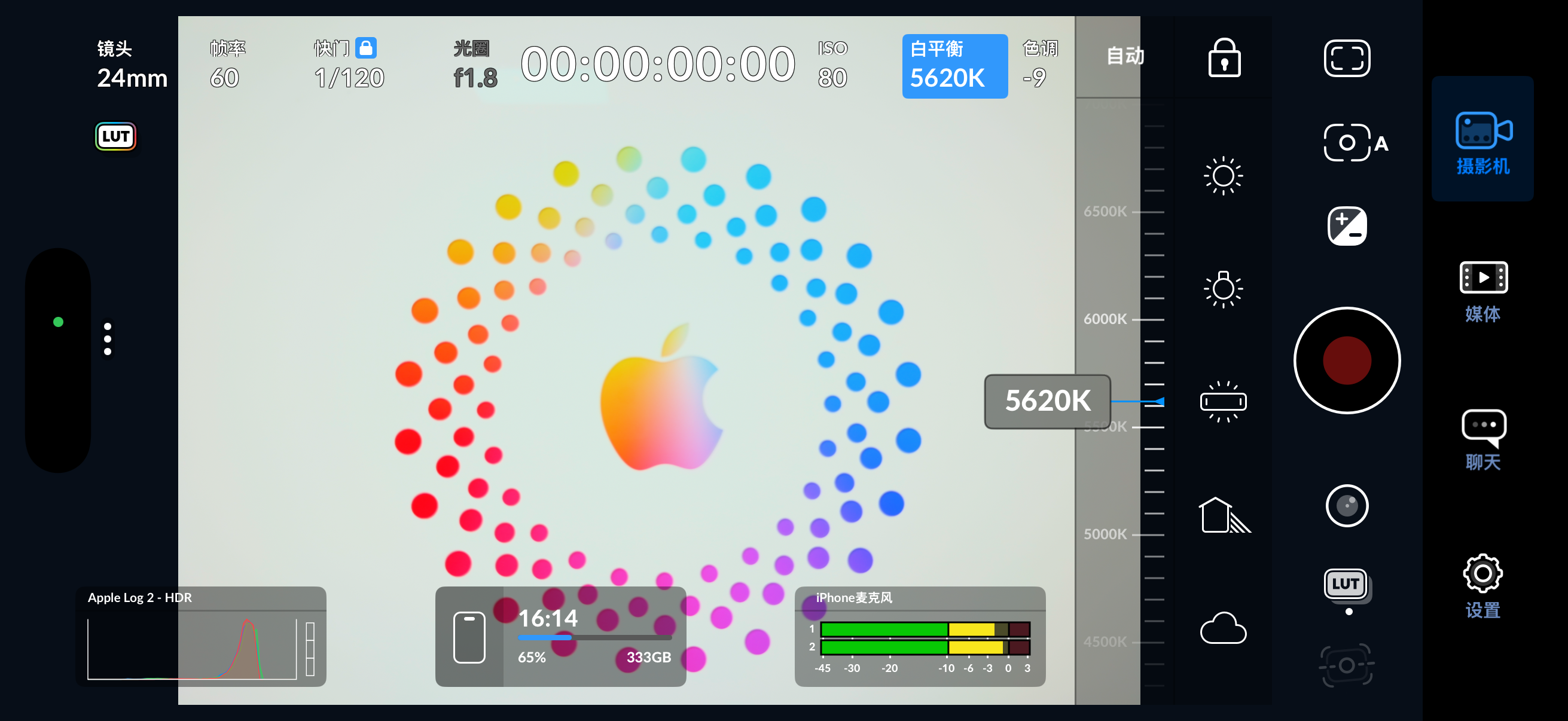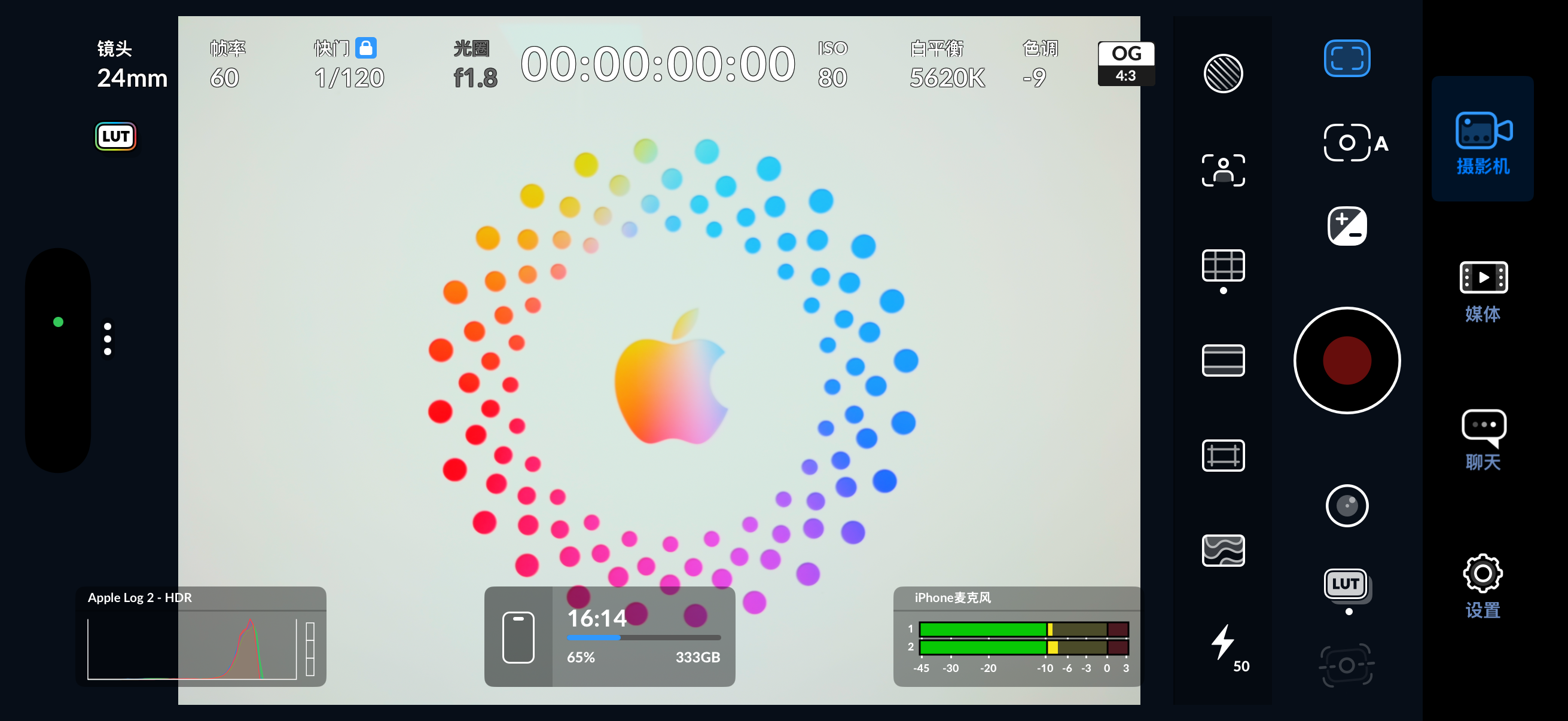 我这里用的拍摄APP是Blackmagic Cam,一款功能非常强大的免费拍摄APP,专业程度甚至超过了我的佳能R7,真的要批判佳能这个品牌了,做的产品真的是……不知道说什么好。