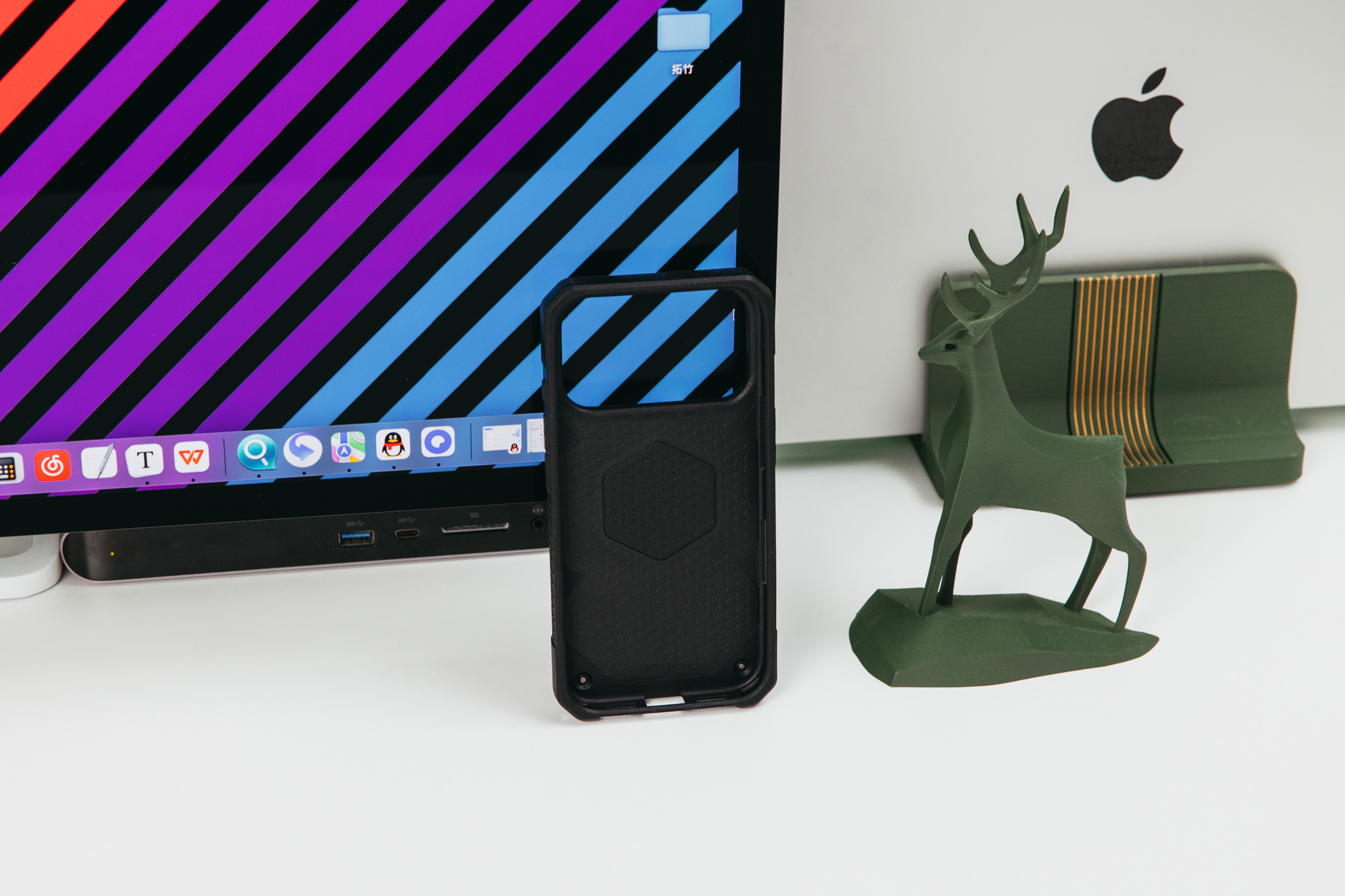 上机效果实拍,可以看到每个角都设计了雕刻转角,用以增强跌落保护。
