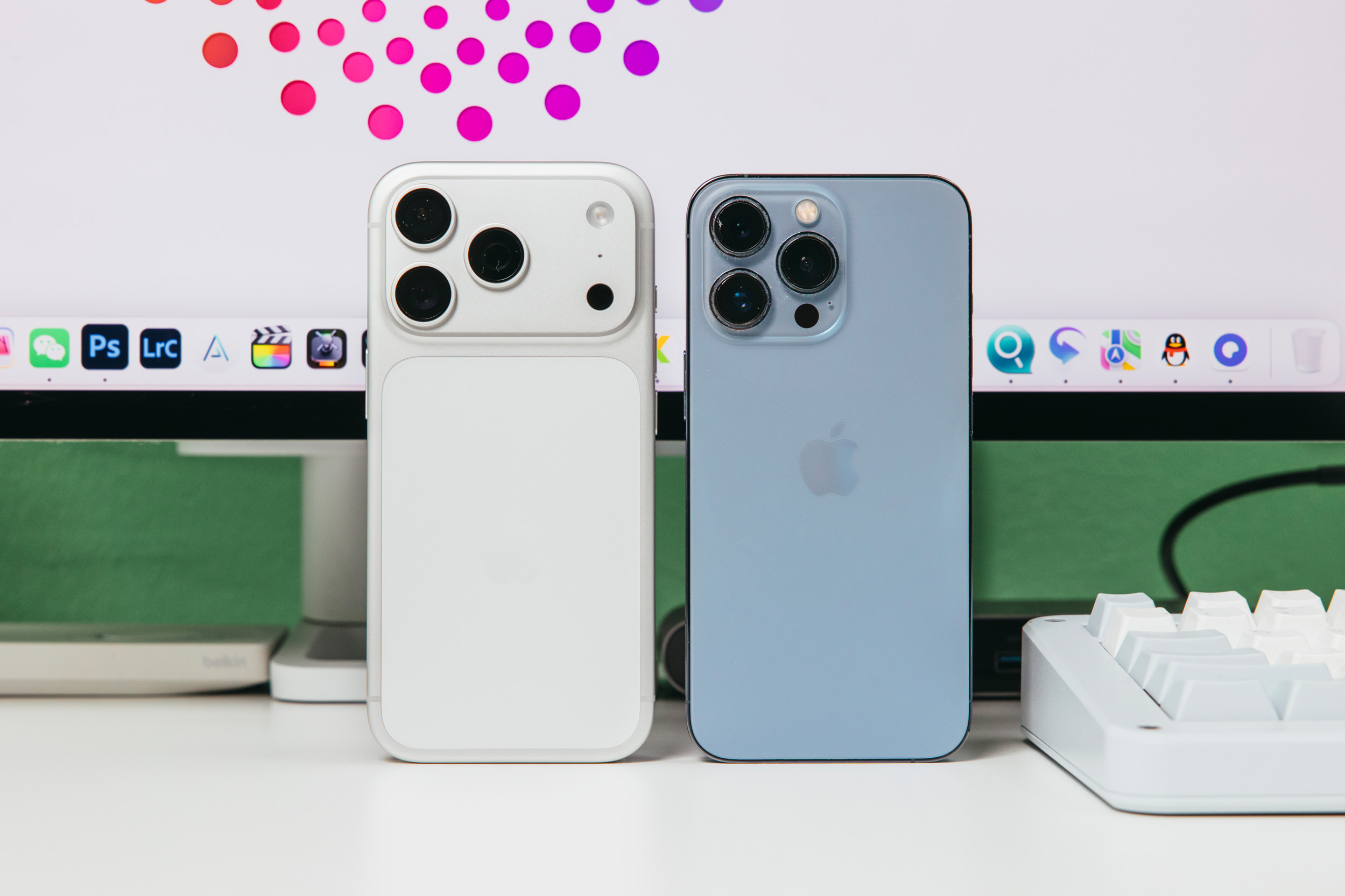 处理旧手机之前先和老iPhone 13 Pro来张合影,14 Pro和13 Pro的设计老实说要比17 Pro更好看,远峰蓝这个颜色现在看来也不过时。