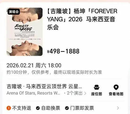 杨坤,马来西亚演唱会的门票是498元起步,1888元封顶