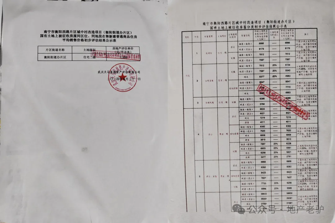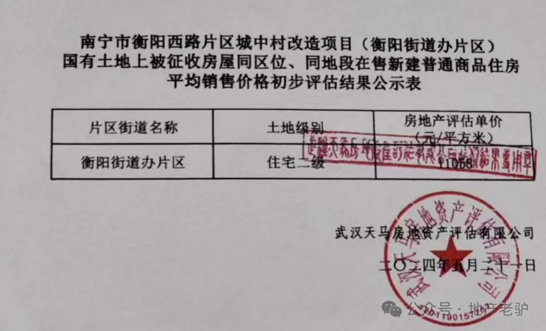 5月29日连同征拆范围一起公布的还有《南宁市衡阳西路片区城中村改造项目(衡阳街道办片区)被征收房屋分类及同区位、同地段在售新建普通商品住房平均销售价格初步评估结果公示》以下简称《评估结果公示》。