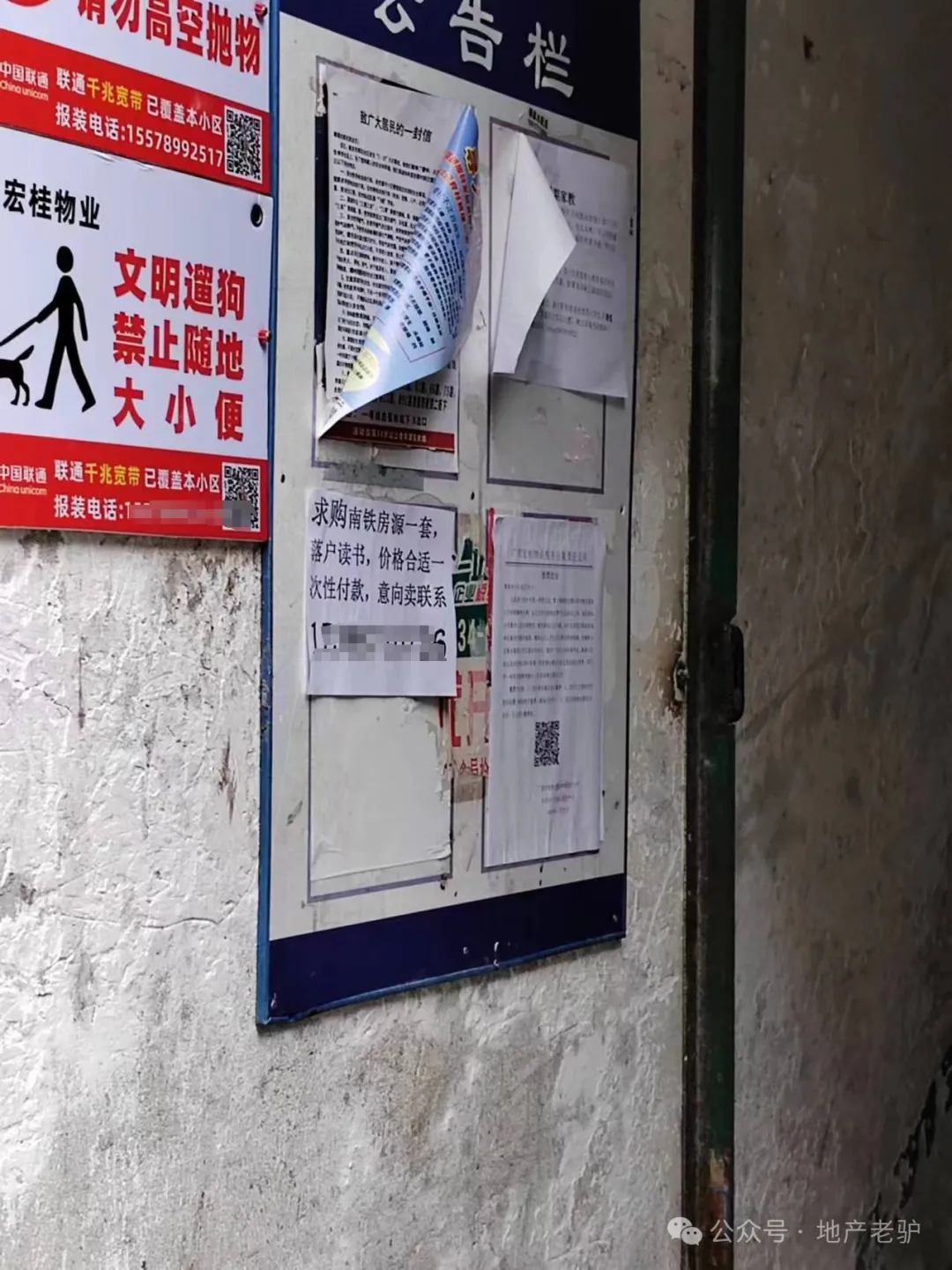 楼栋过道比较陈旧,不时能看到各种求购学区房的信息。