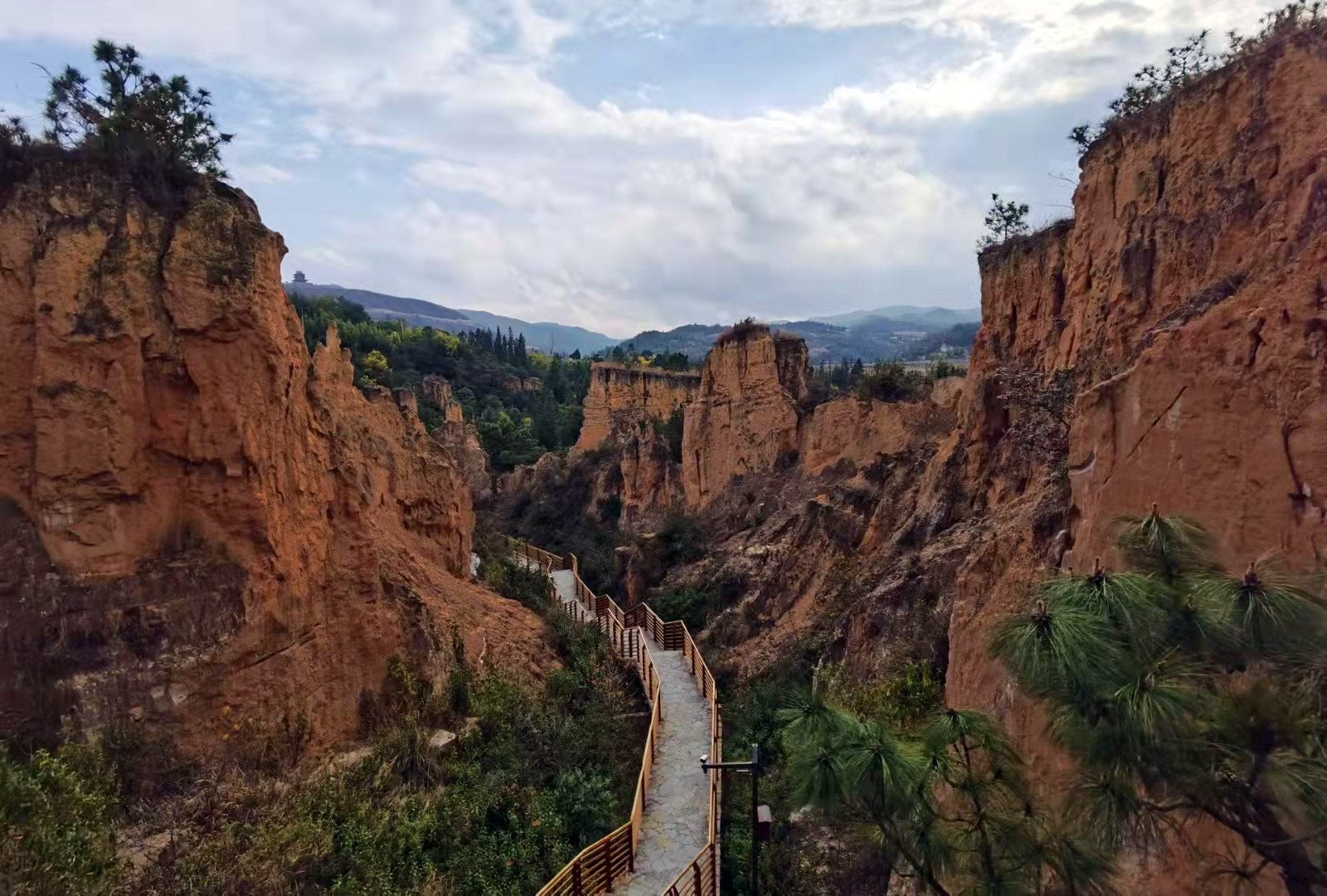 这里除了千姿百态的地貌奇观外,还有洞穴、浮雕,沙地跑马场、古栈道、烽火台、彝家寨门等。据说,这里就是三国中孟获的故乡,而电视剧《三国演义》中诸葛亮七擒孟获的拍摄场地,就是在这里取景的,从而也吸引了很多爱好者前来打卡,想象2000多年前的场景,当年发生的传奇故事,仿佛听到了沙场上相互厮杀的激烈争斗声……。