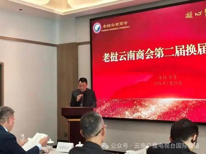 2026年1月25日下午,老挝云南商会(下简称“云南商会”)第二届换届选举大会在万象美格瑞酒店隆重举行。老挝中国总商会代表,老挝云南商会常务理事单位、名誉会长单位、副会长单位代表,及部分特邀嘉宾共50多人齐聚一堂。