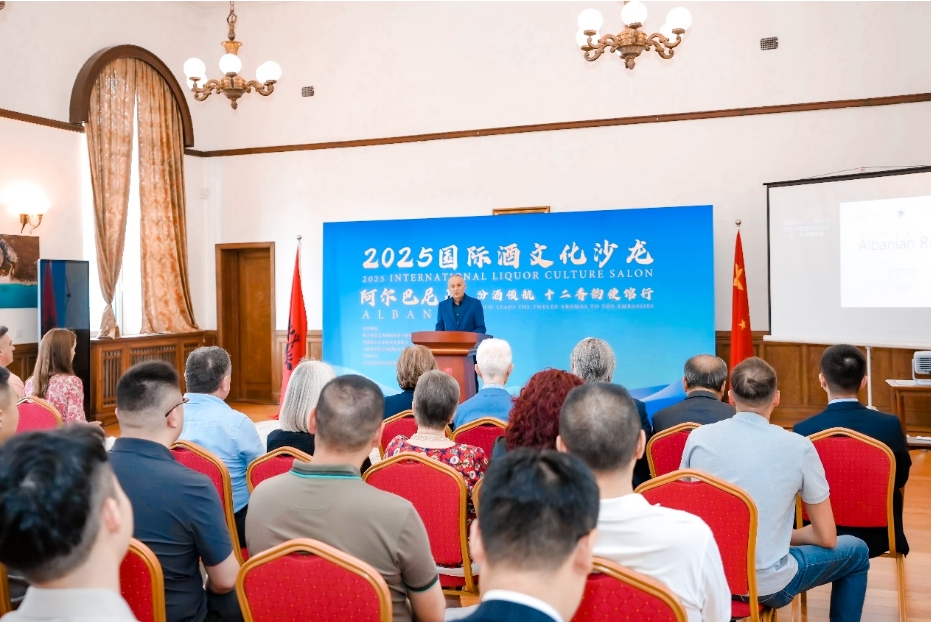 里扎·波达在发言中谈及巴尔干地区瑰宝——阿尔巴尼亚珍贵烈酒拉基亚(Rakija)。他表示,阿尔巴尼亚是个充满神秘色彩的国度,不仅以其自产的优质葡萄酒闻名,更以其烈酒的独特风味吸引着八方来客。拉基亚(Rakija)是阿尔巴尼亚最著名的传统饮品之一,口感丰富,特色鲜明,阿尔巴尼亚人民热情好客的个性体现在所酿造的美酒中,不断深化着与世界各国的友谊。今年是阿尔巴尼亚与中国建交76周年,希望通过此次活动传递阿尔巴尼亚人民的友好和真诚,让中国朋友在品味拉基亚(Rakija)的醇厚时,能感受到巴尔干半岛的热情与魅力,令两国的传统友谊如同美酒一般历久弥香。