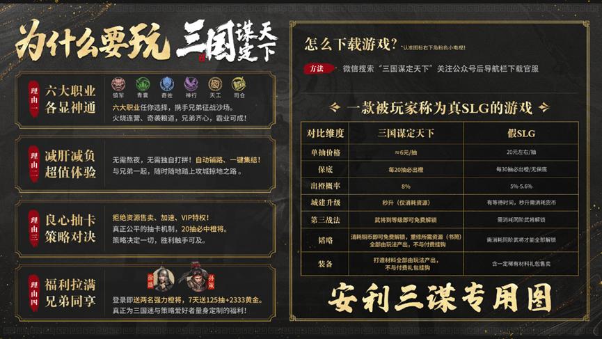 最近三谋临近周年庆,新人入坑福利直线升级!上线就送145抽求贤令,保底橙将到手,还有黄金2333、开荒橙卡孙策等豪华奖励,相当于开局自带超能力!不管是冲榜还是佛系发育,这些福利都能让你起飞,而且活动期间参与B站联动,还能叠加领取大会员,新人直接赢在起跑线!