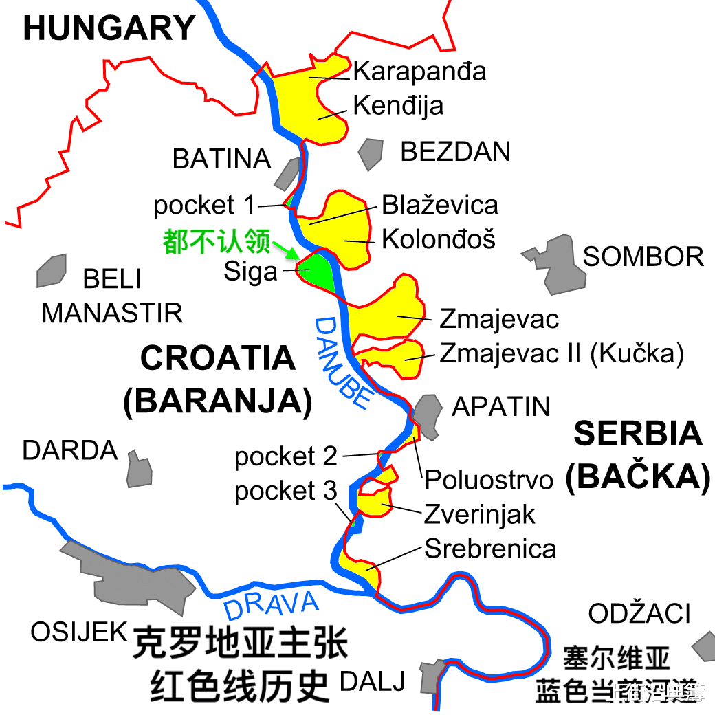 塞尔维亚按现在的河道,不能要它。克罗地亚觉得按历史河道,它属于塞尔维亚,也不认领,这块地就这么悬在两国中间。