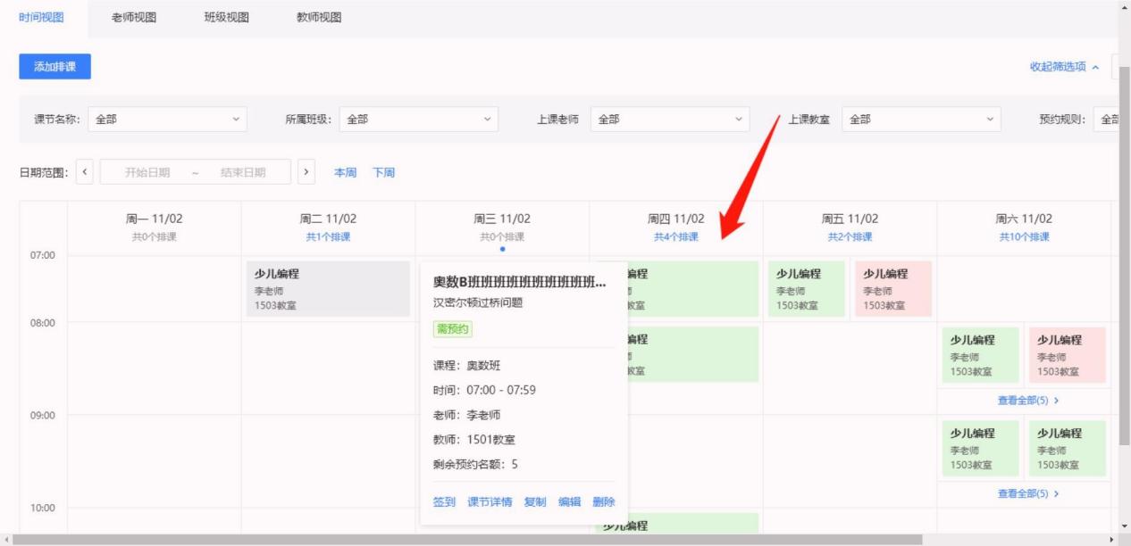 核心实用功能:涵盖少儿课程上架(图文/音视频)、学员管理、简单排课消课、订单统计,无需额外搭配工具,满足小型少儿班全流程需求。