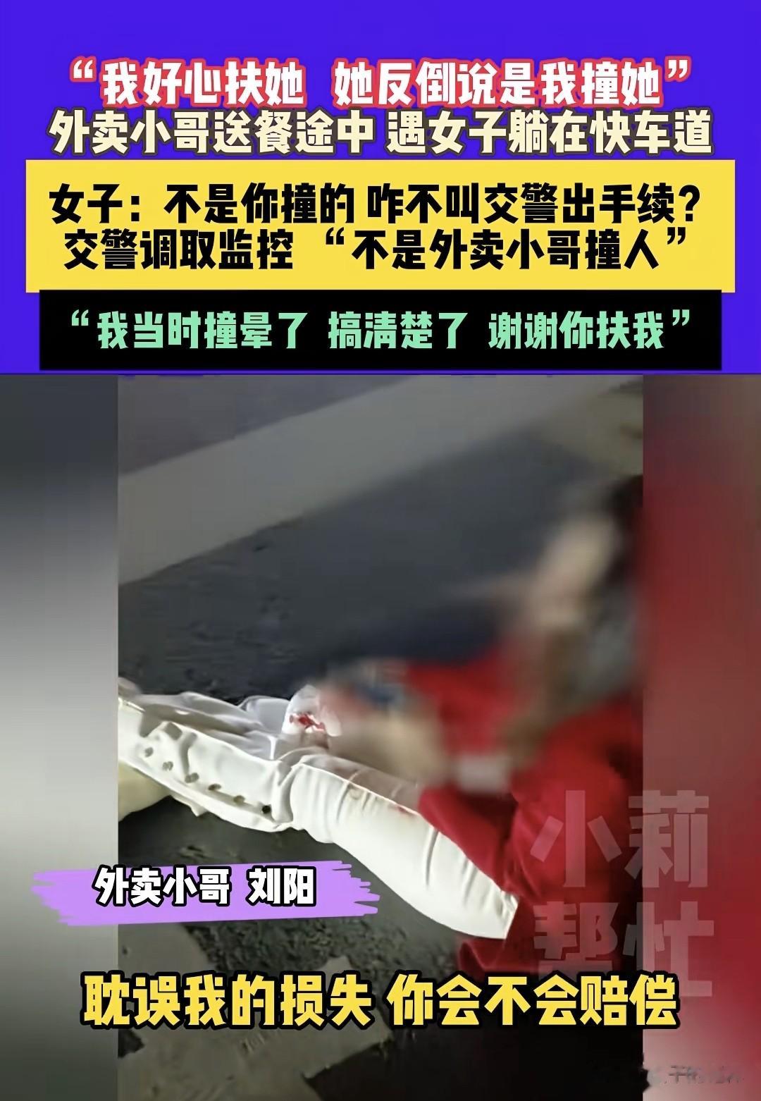 11.26日消息,河南郑州一外卖小哥找到《小莉帮忙》称我好心扶她,她反倒说是我撞的,要求不能走赔偿和治疗。