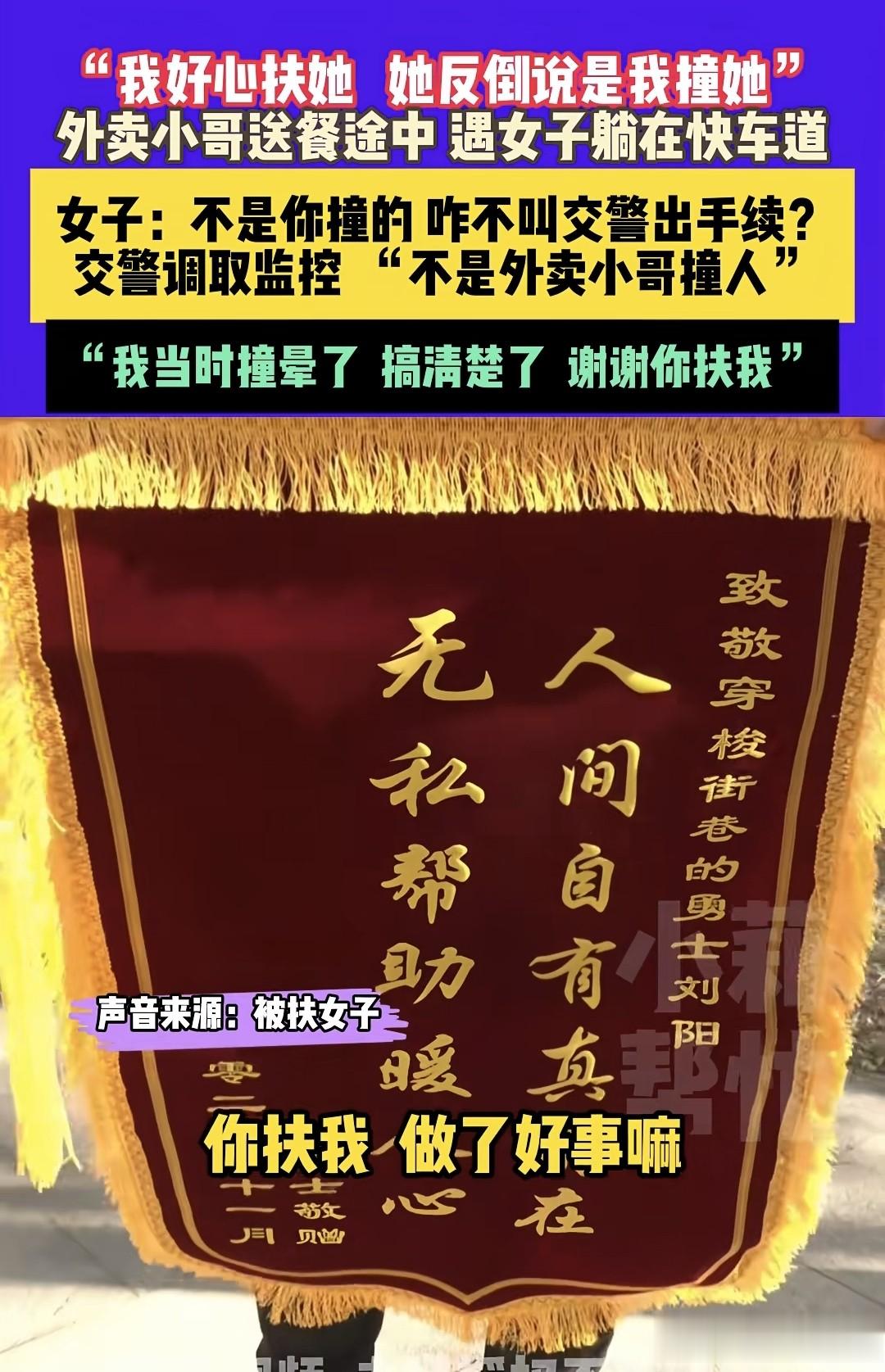 谢谢你扶我做好事,还送了锦旗表扬。
