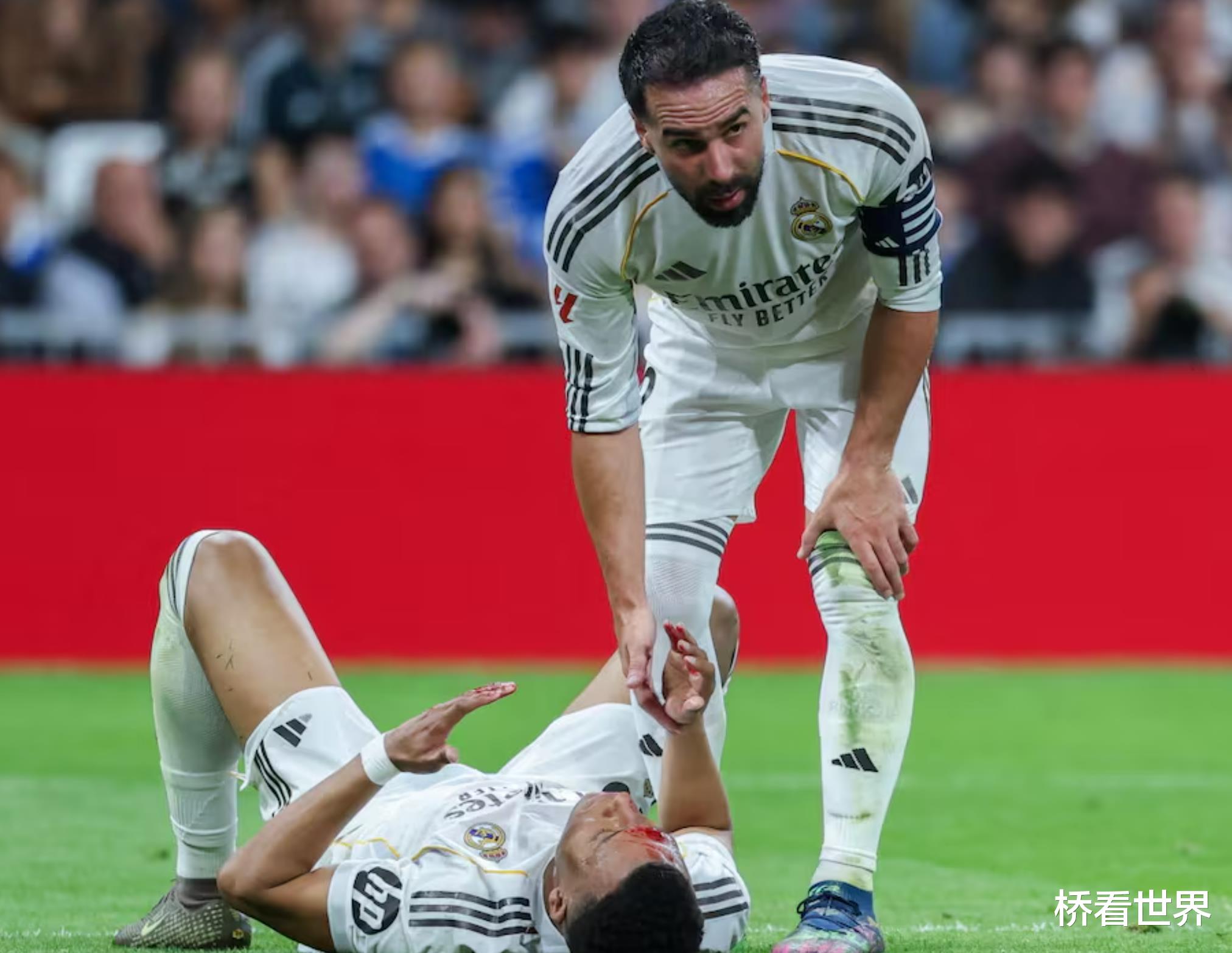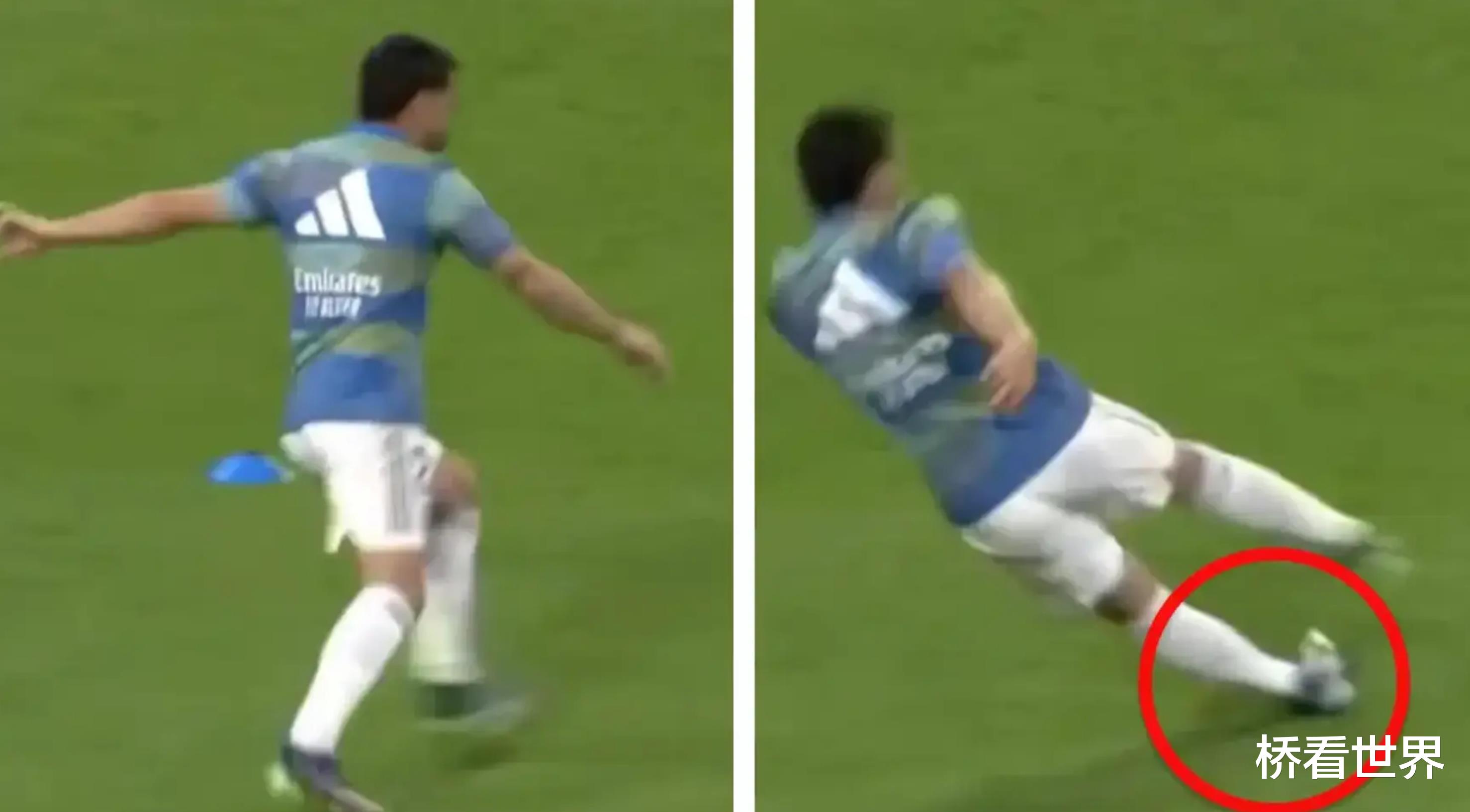 卡瓦哈尔在赛前热身时,原本准备起脚踢球,却脚下一滑摔倒在地。这一突发状况一度引发担忧,不少皇马球迷担心他因此受伤。
