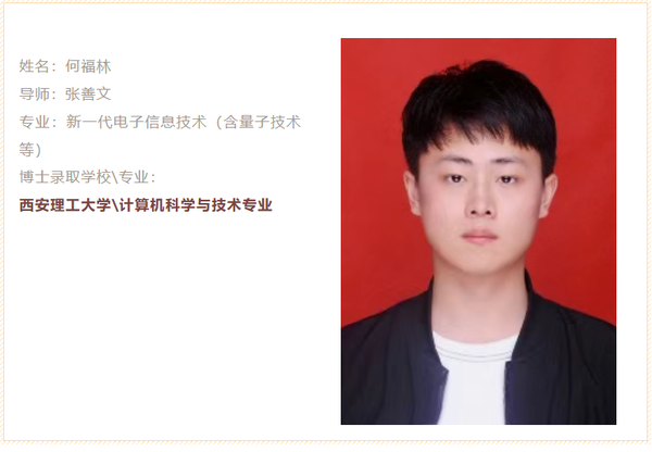 他始终以科研为核心,硕士期间发表SCI论文3篇、中文论文1篇,受理发明专利5项、授权软件著作权1项,考取嵌入式开发工程师证书,还斩获西京学院研究生一、三等奖学金,研究生电子设计竞赛西北赛区三等奖等荣誉,用扎实的科研成果为申博保驾护航。