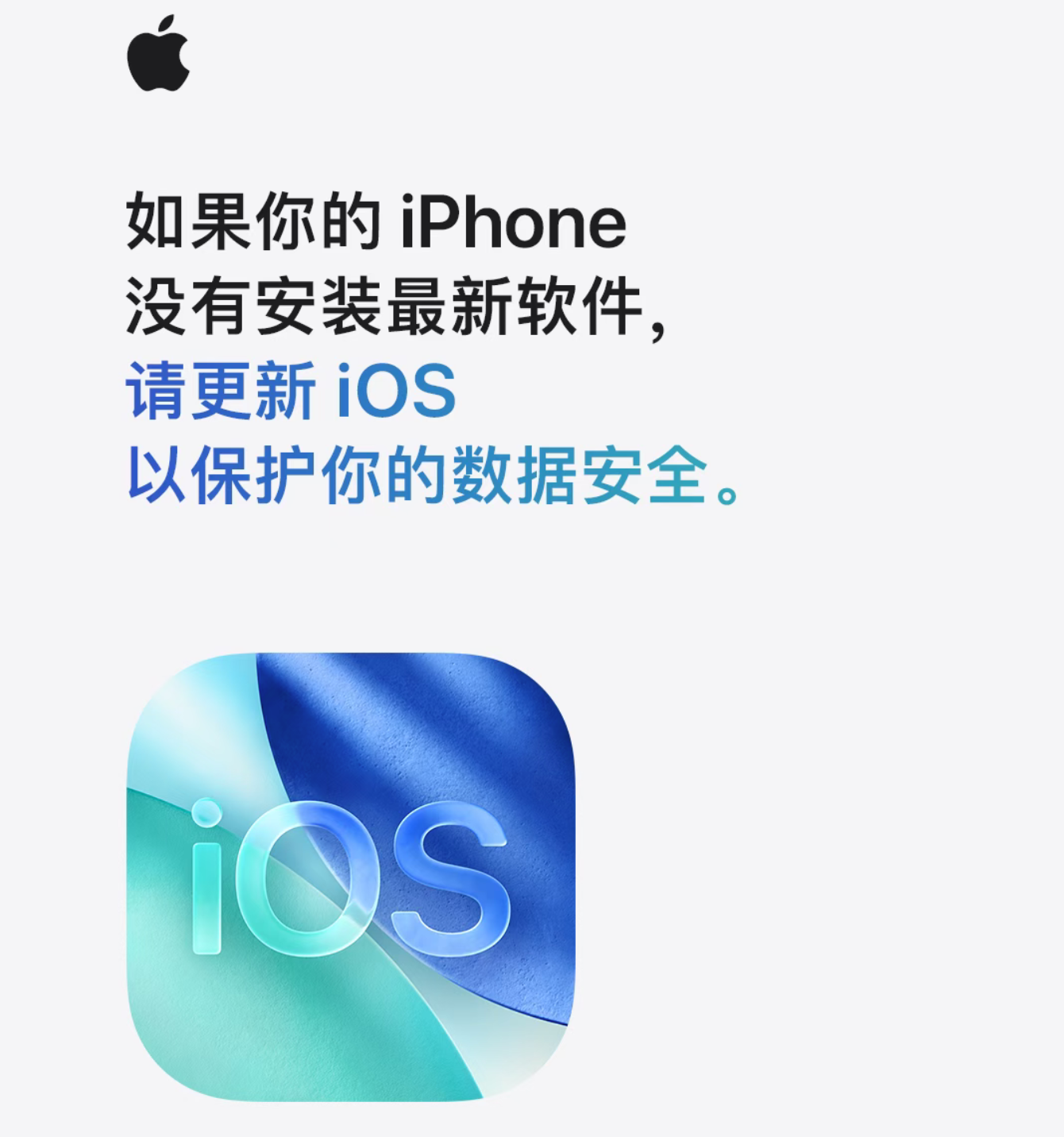 2026年4月15日,苹果官方微信公众号发文,提醒iPhone用户如果没有安装最新软件,请更新iOS,以确保数据安全。