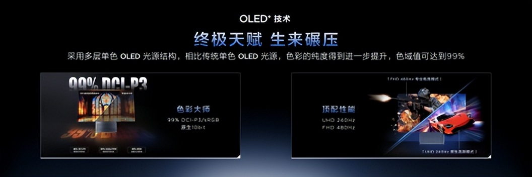 下面简单来带大家了解一下TCL X3A,其作为一款OLED显示器,在画质的色彩表达上极为惊艳。同时在此基础上升级,使用了 OLED+ 技术,在滤光层使用了使用Matrix-Pure 超清矩阵像素,通过重新排列成“矩形”子像素,使得像素边缘更加清晰,解决文字彩边问题。配合采用圆偏振光低反技术,可以达到 2% 低反率,在强光下也不容易发紫偏色。