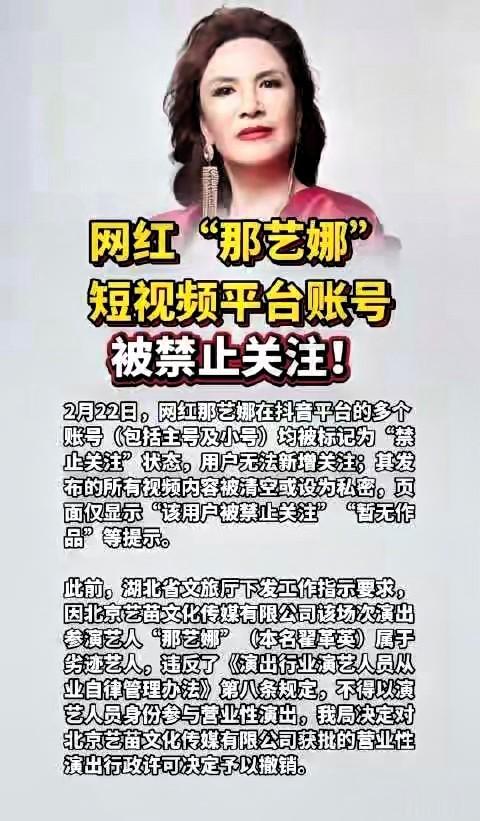 2. 湖北省文旅厅2026年2月12日关于那艺娜劣迹艺人认定及演出许可撤销公告