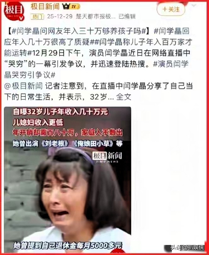 闫学晶:直播炫富又哭穷,入学造假毁口碑,老戏骨彻底失格