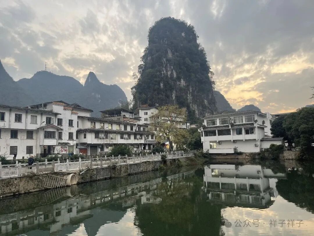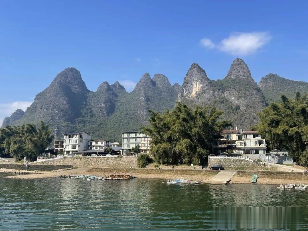 过了螺狮山,远远地再次看到美景时,那就是阳朔了,近处的龙头山,远处的碧莲峰,船停靠在龙头山码头,入住益田西街精典民宿罗舍。