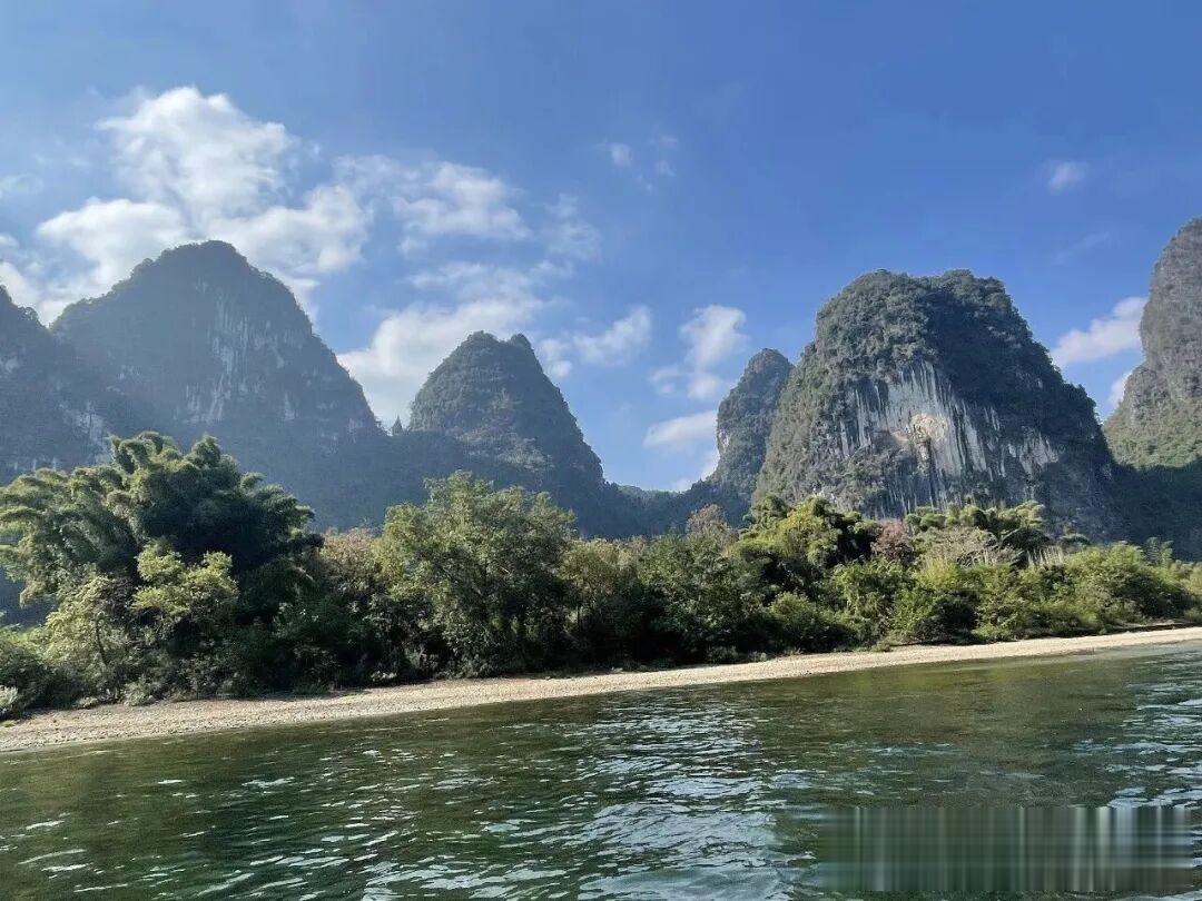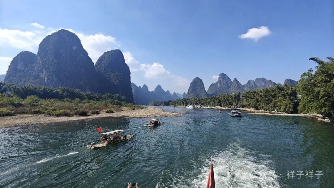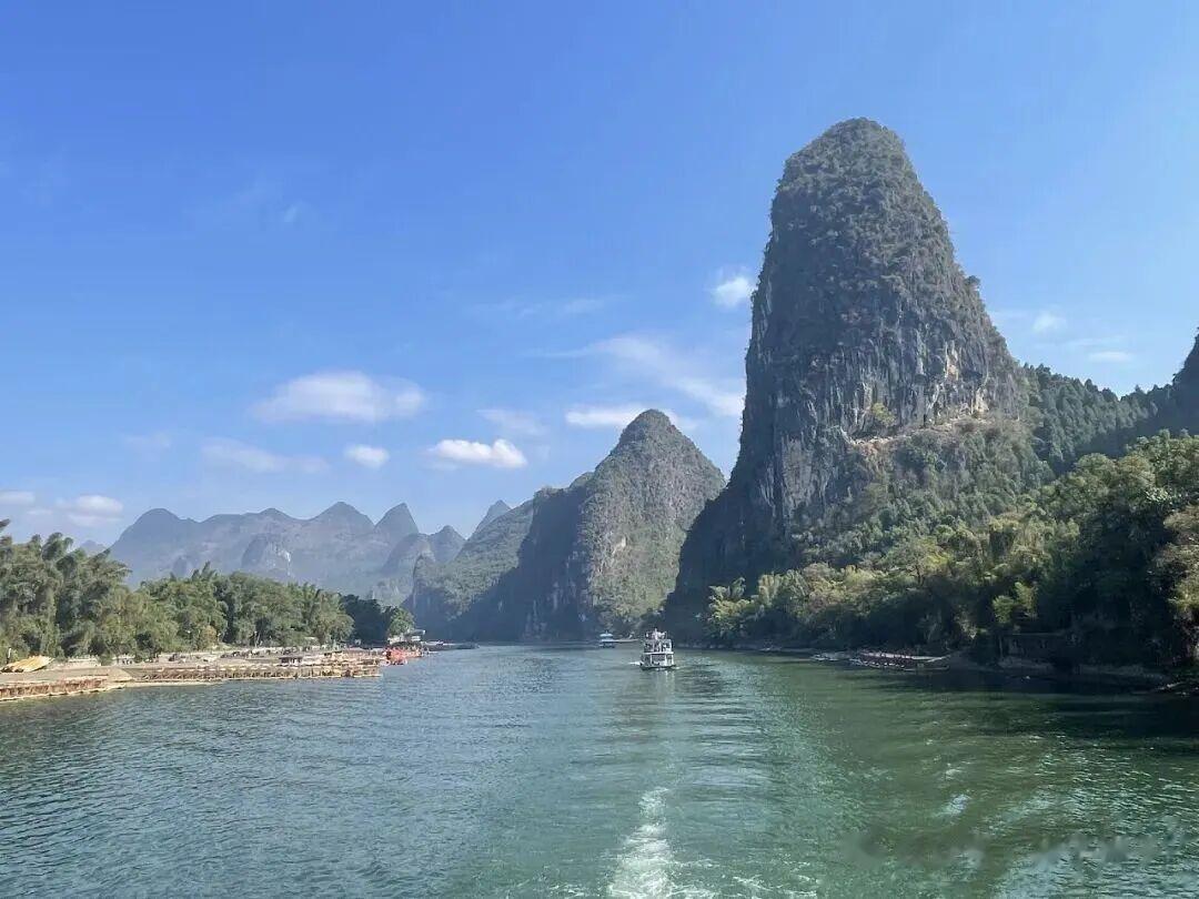 桂林至阳朔,由漓江一水相连,只所以选择乘坐漓江游船,主要是奔着这漓江山水的一路美景而来。