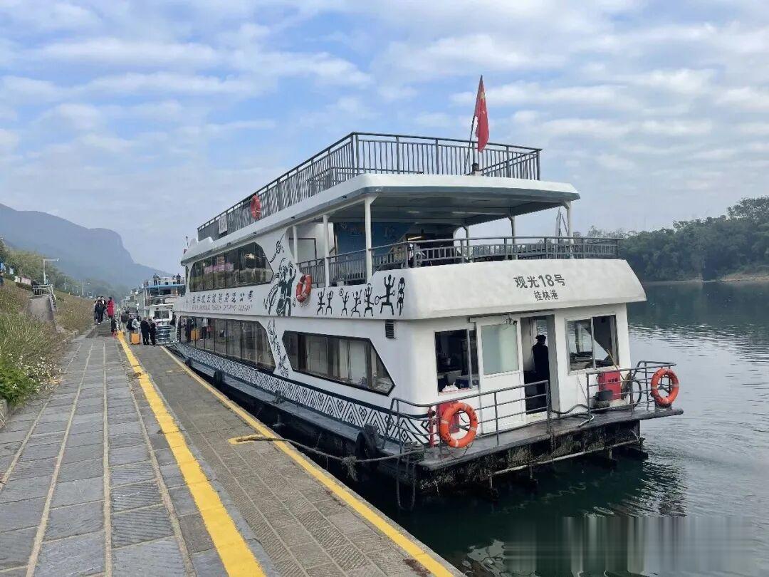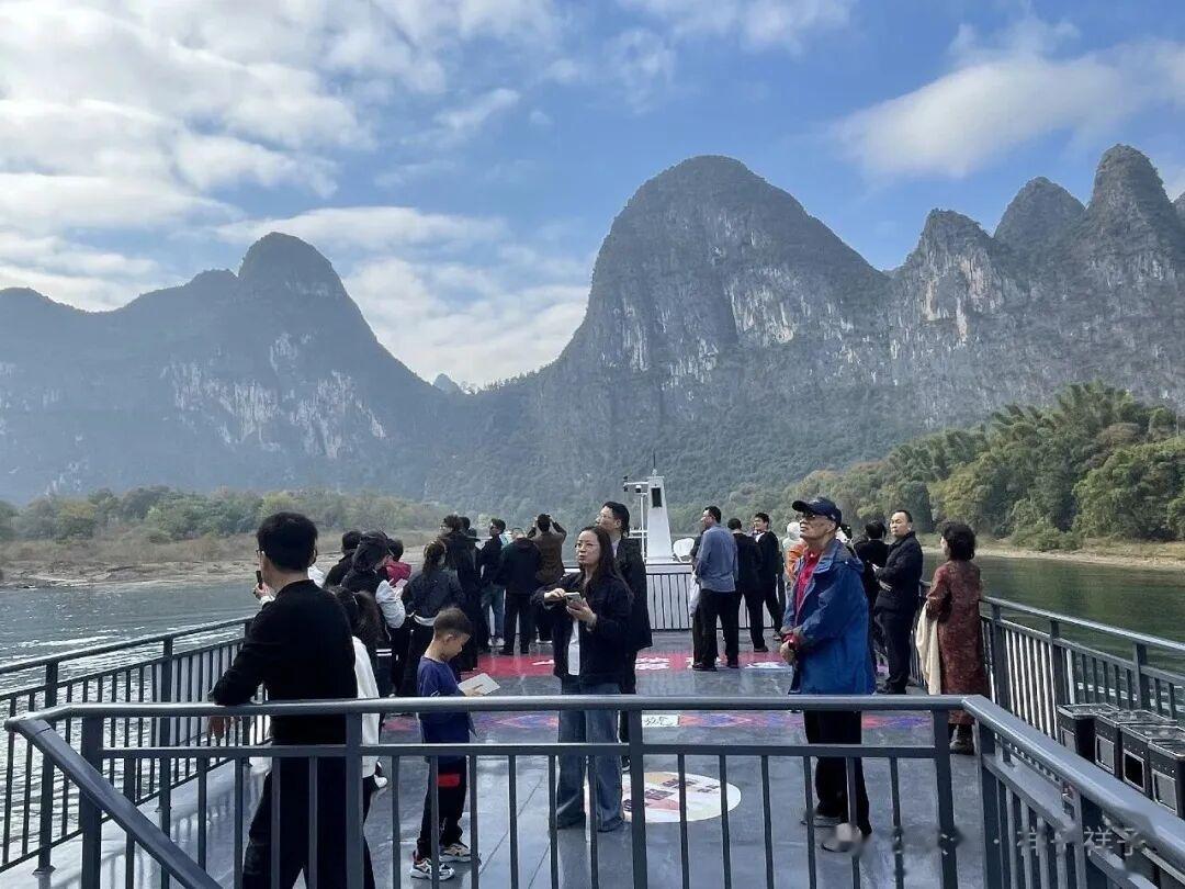 所乘万寿689号航班,9:30准时起航。漓江景区起于桂林磨盘山码头,止于阳朔龙头山码头,全程约63公里的漓江水道,行程约4个半小时,无疑是汇聚了漓江的最精华景点!!