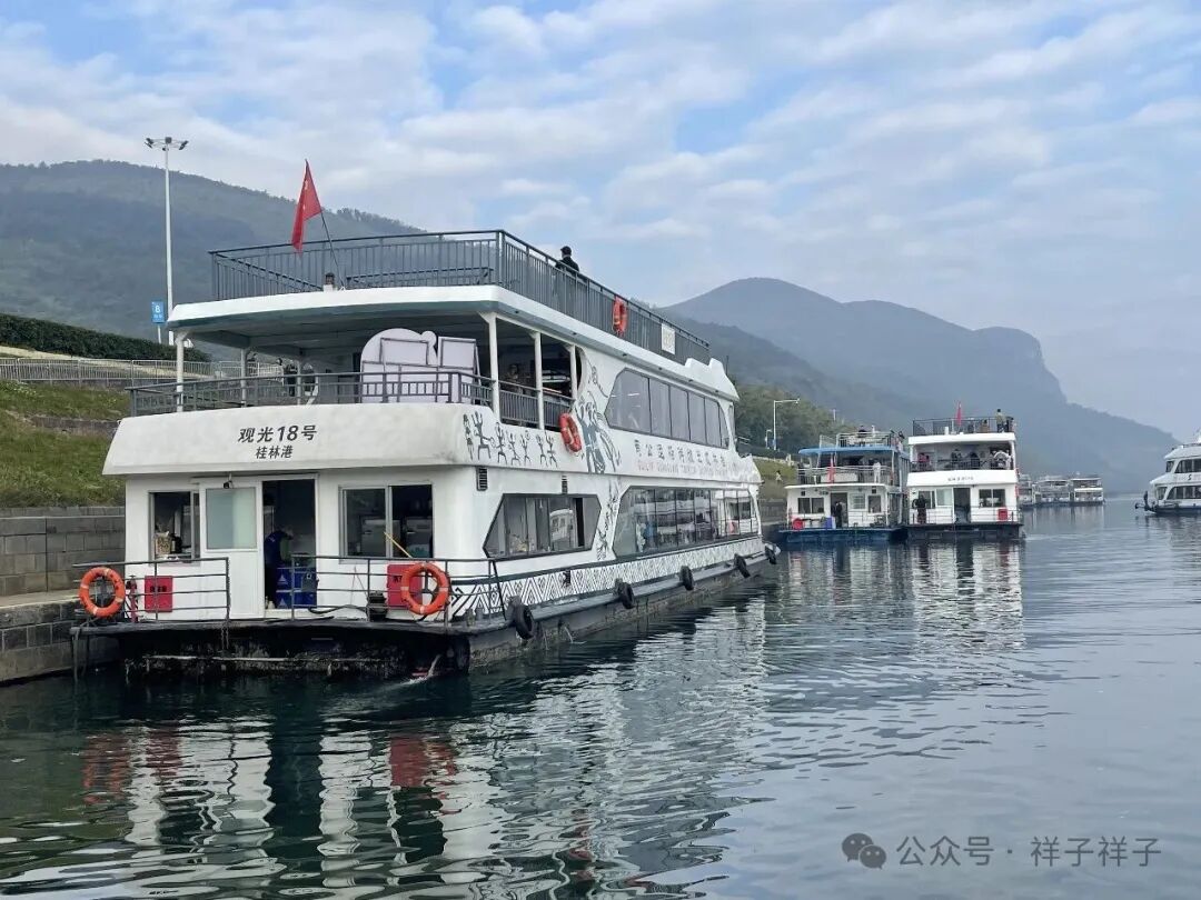在桂林街头,游船售票点随处可见,但为图个方便,还是前一天在酒店预订了磨盘山“漓江三星船”票,主要有车到酒店来接!早7:10旅行社的大巴准时到来,坐车前往桂林磨盘山码头。