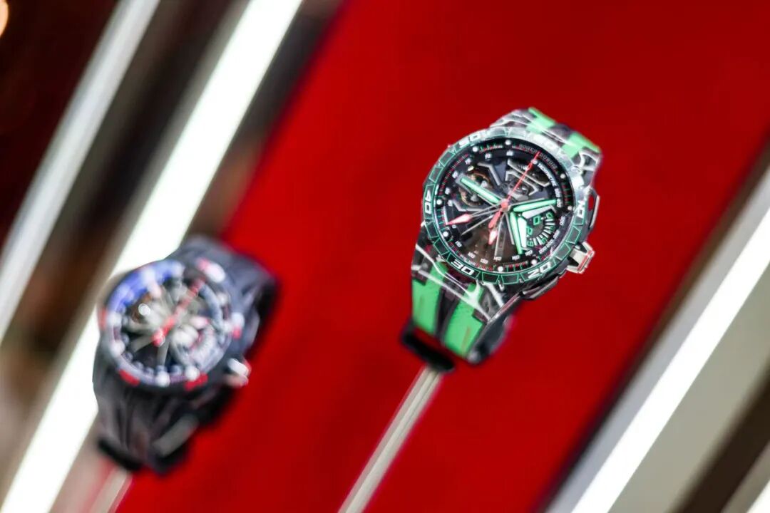兰博基尼Huracán GT3 EVO身披罗杰杜彼的专属配色,与意大利竞速传统与瑞士精密制表工艺不谋而合,完美相融。罗杰杜彼以这款车为灵感推出了限量款王者竞速系列单摆轮小牛腕表,与车辆同场展出,更显竞速与时间的完美结合。