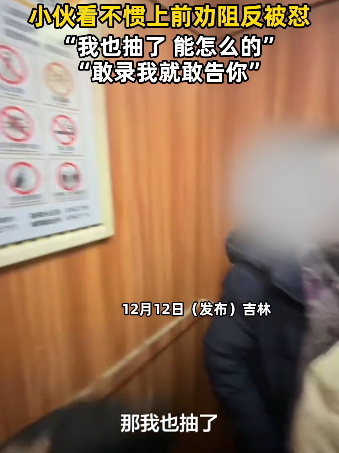 地点: 吉林,某电梯内(典型的密闭狭小空间)。人物: 一名正在吞云吐雾的女子,一名试图劝阻的陌生男子。冲突点: 男子指着电梯里醒目的“禁止吸烟”标识,好言相劝。按理说,理亏的一方要么灭烟道歉,要么羞愧低头。但这名女子不仅没有熄灭香烟,反而开启了 “战斗模式”。