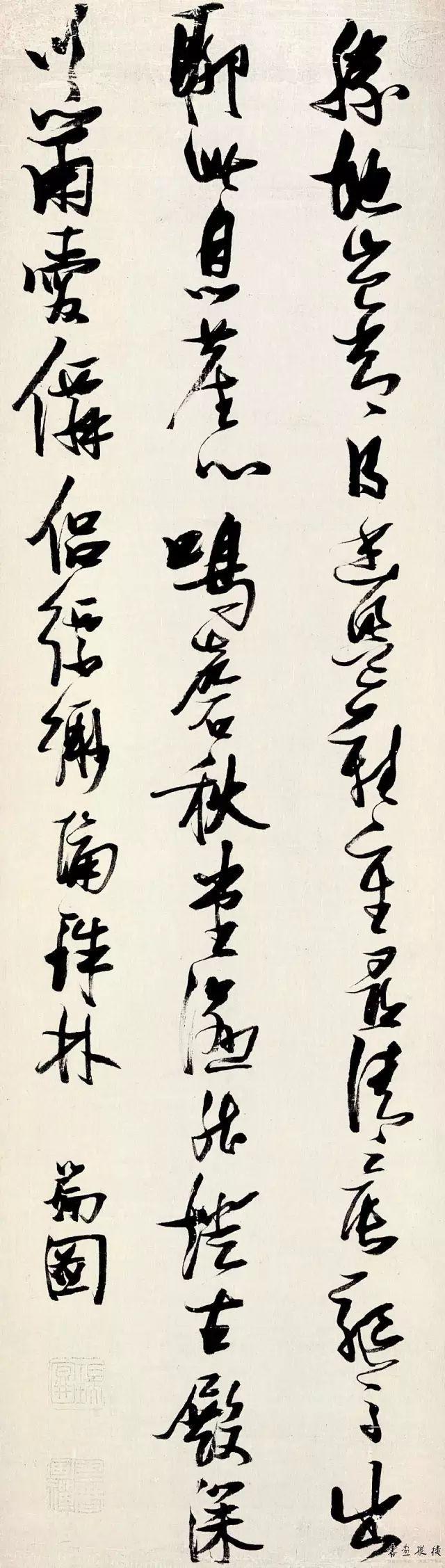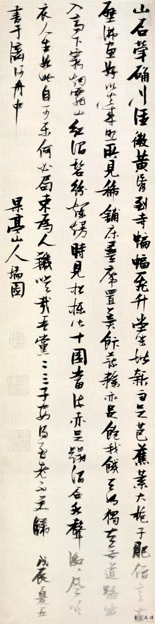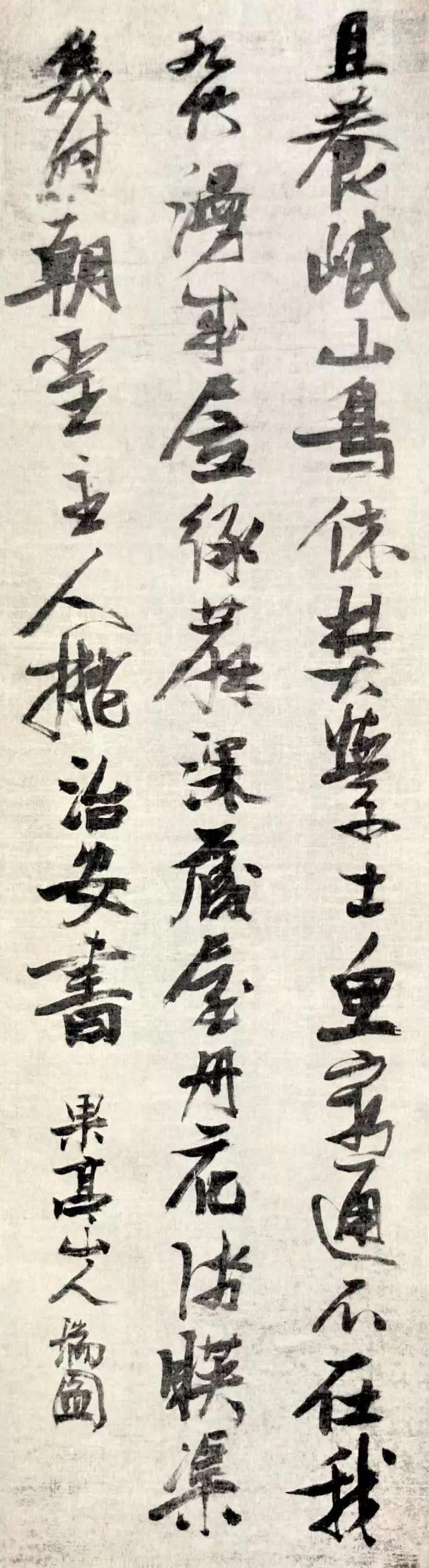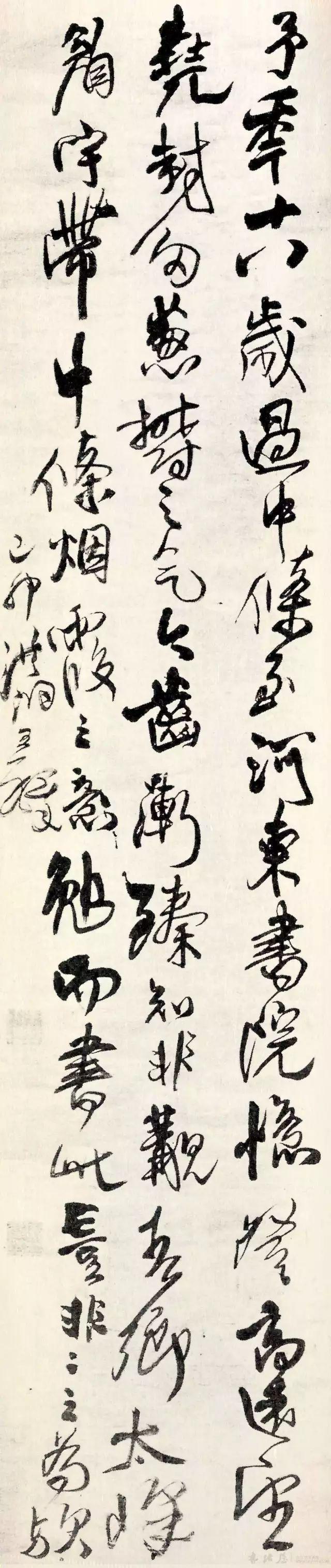 张瑞图、黄道周小楷功力深厚,结字严谨。二人都师法钟繇,前者得其瘦劲,后者取其 宽博。倪元璐于晋人外,早岁专学苏轼,笔意灵逸而结字可见学苏痕迹。王铎浸淫二王,为公认帖学大师。其临帖作品多行草大字,狂放而不逾矩,师古而多创造。傅山于书学传统领会颇深,行草有两种面目。早年受祝允明影响,有遒美潇洒一类作品传世;晚年笔意古拙恣放,自成一家。