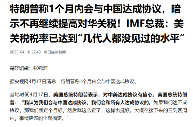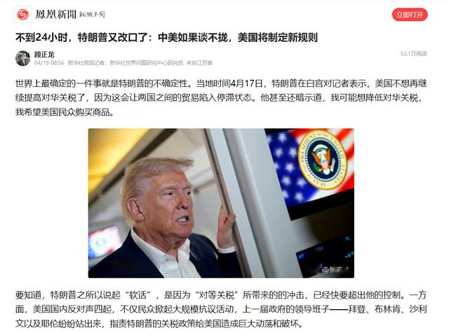 撑不住了?特朗普暗示降低对华关税.观察者网.2025-04-18