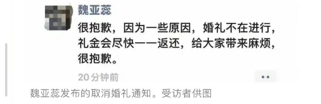 12月10日,早上9点多,魏某没有穿婚纱、没有梳妆打扮,她从7楼一跃而下,结束了自己的生命。遗体坠落至一楼业主的院子内,业主称房子没办法再住了,要求家属赔偿,不赔偿不让挪遗体。