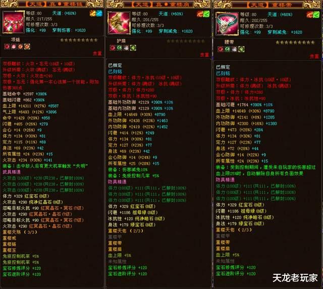 宝石基本8级了,强化拉满,雕纹拉满。身上的戒指护符和项链,全都是不绑定的,仅这5件重楼就价值60多万了!