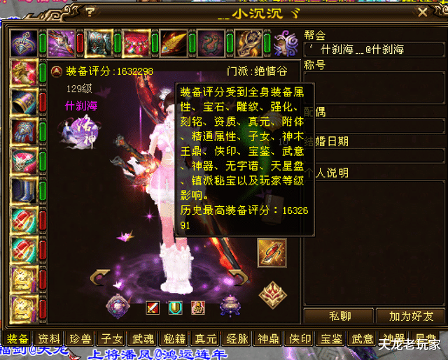 今年最大的大佬级黑马,应当是小沉沉吧。众所周知,小沉沉也是一名主播,今年在新区打造了不少顶级号,其中就有163万评分的绝情谷,刚刚转服进入【什刹海】服务器,落地就拿下了不绑定重楼链。