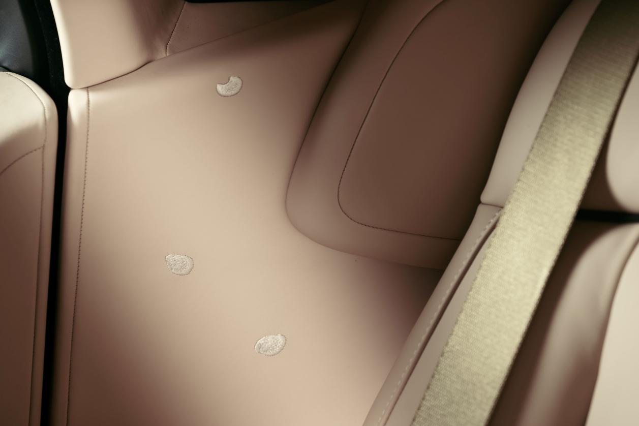 最后,车内顶篷运用单针缎纹刺绣工艺绘制了朵朵樱花,每片花瓣皆如宝石般,随光影变幻呈现迷人光泽。座舱后排随处可见花瓣轻舞,飘落于车门饰板和座舱私密套件中的隔墙上。