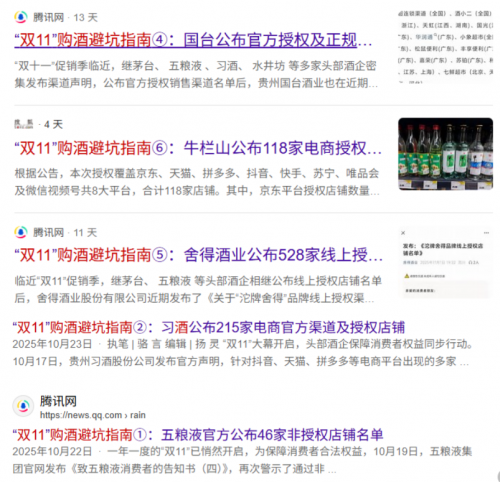 多家主流酒企,包括茅台、五粮液、舍得酒业、习酒等,在双十一期间集体发布渠道声明,公布官方授权名单,并罕见地直接点名非授权店铺。这些举措直指电商平台存在的低价及假冒产品问题,旨在引导消费者通过正规渠道购买,维护品牌价值与市场秩序。
