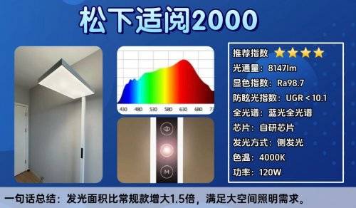 推荐理由:拥有11300lm的总光通量和20㎡的宽广照明覆盖。