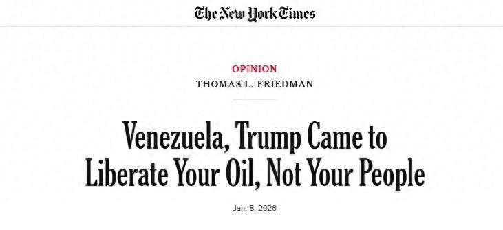 普利策奖获得者、《纽约时报》专栏作家托马斯·弗里德曼1月8日撰写评论,他认为特朗普选择与马杜罗政权残余势力合作,而非支持赢得大选的反对方领袖马查多,是为了快速控制石油,而不是推动真正民主转型。但没有真正的自由公平选举和政权更迭,就不可能吸引大规模美国投资,也无法真正复兴委内瑞拉石油出口。他预测,特朗普的强权思维会失败,因为它忽略了人民抵抗和投资者的现实需求。