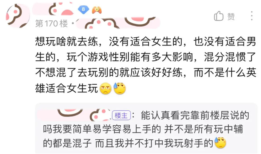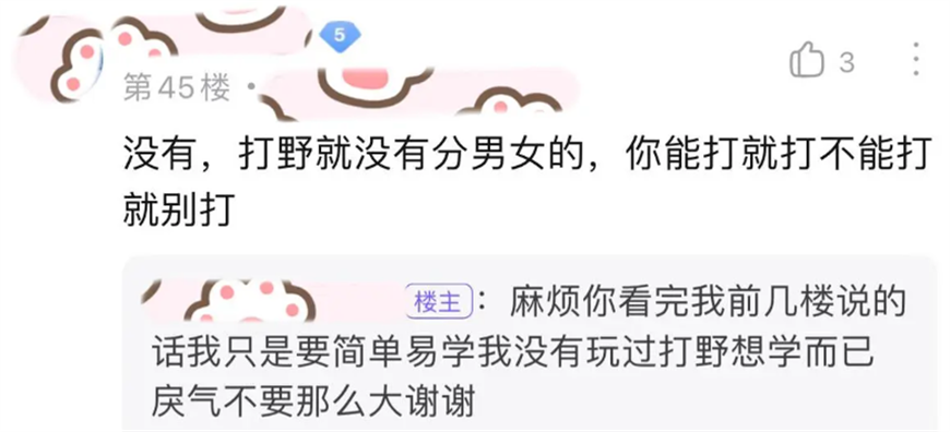 这位女玩家的帖子初看之下并无特别之处,但“适合女性玩家”这几个字却仿佛自带光环,瞬间吸引了众多吃瓜群众的眼球。一些网友表示不解:“为什么非得强调‘适合女性’?既然决定挑战打野,那就应该勇敢尝试,何必着重强调性别呢?”