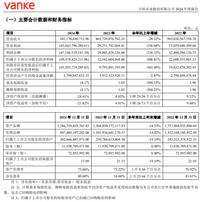 巨额亏损意味着万科不能通过自身造血来化解债务。