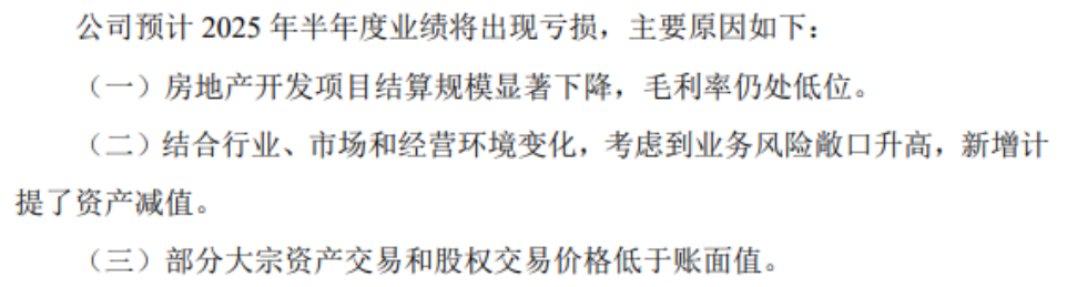 万科在公告中解释说,上半年业绩预亏的主要原因包括三个方面: