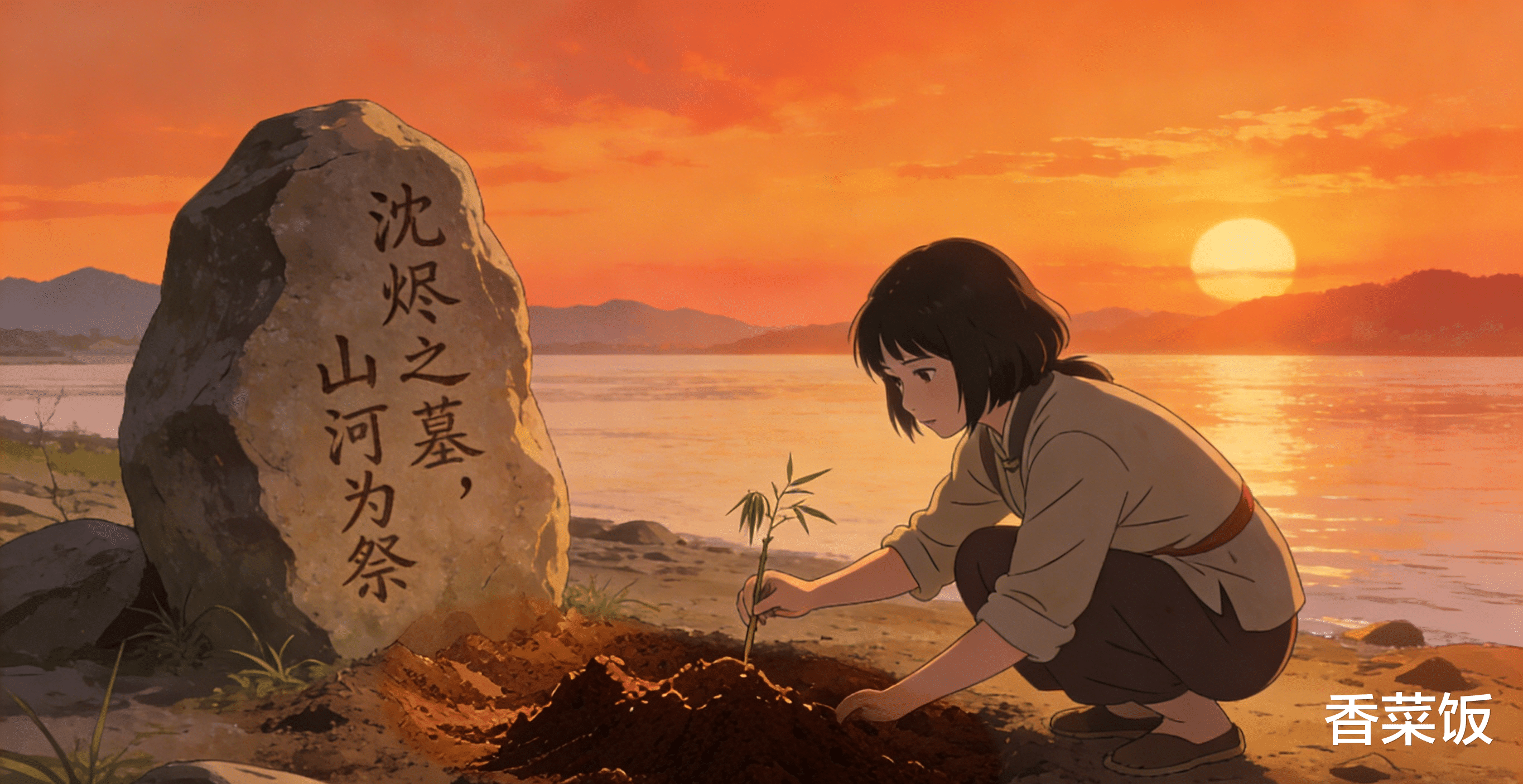没有墓碑,我捡了一块扁平的石头,用簪子刻字,“沈烬之墓,山河为祭。”