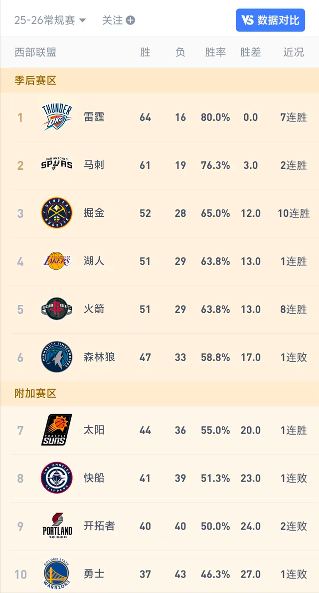 现在西部第三的归属还有悬念。湖人要是接下来主场拿下太阳和爵士,同时掘金连续输给雷霆和马刺,湖人就能升到第三。掘金的赛程确实不好打,两个对手都是西部前二的夺冠热门,全核心出战的话,掘金真有可能两连败。
