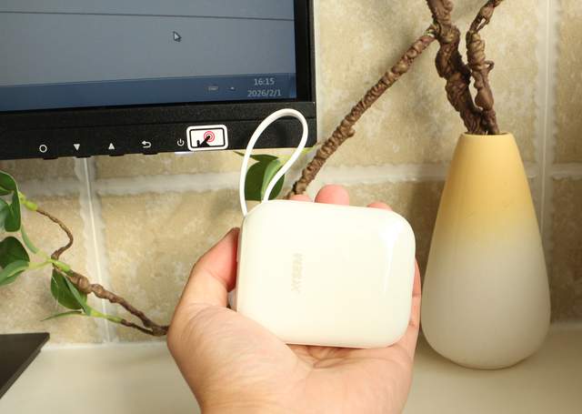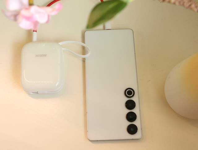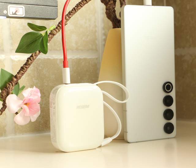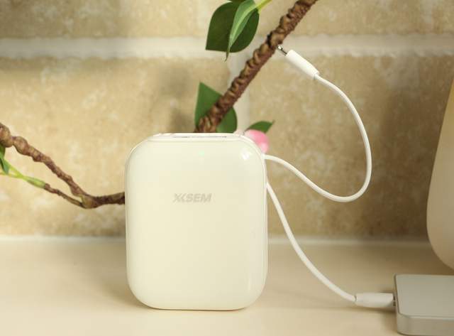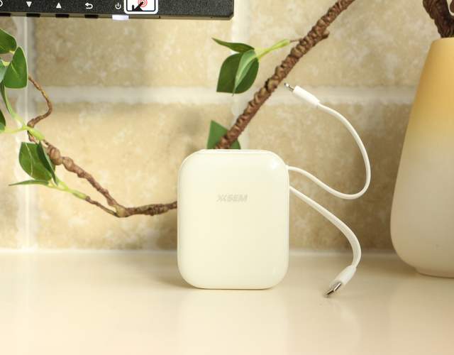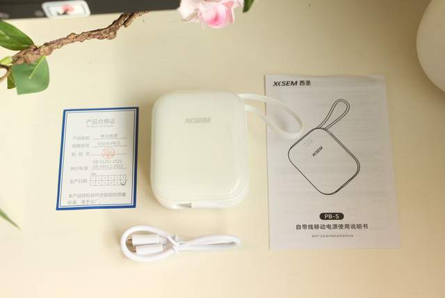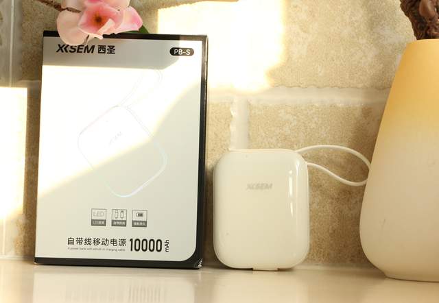 西圣PB-S充电宝全身是温柔的奶白色,表面带着光泽。